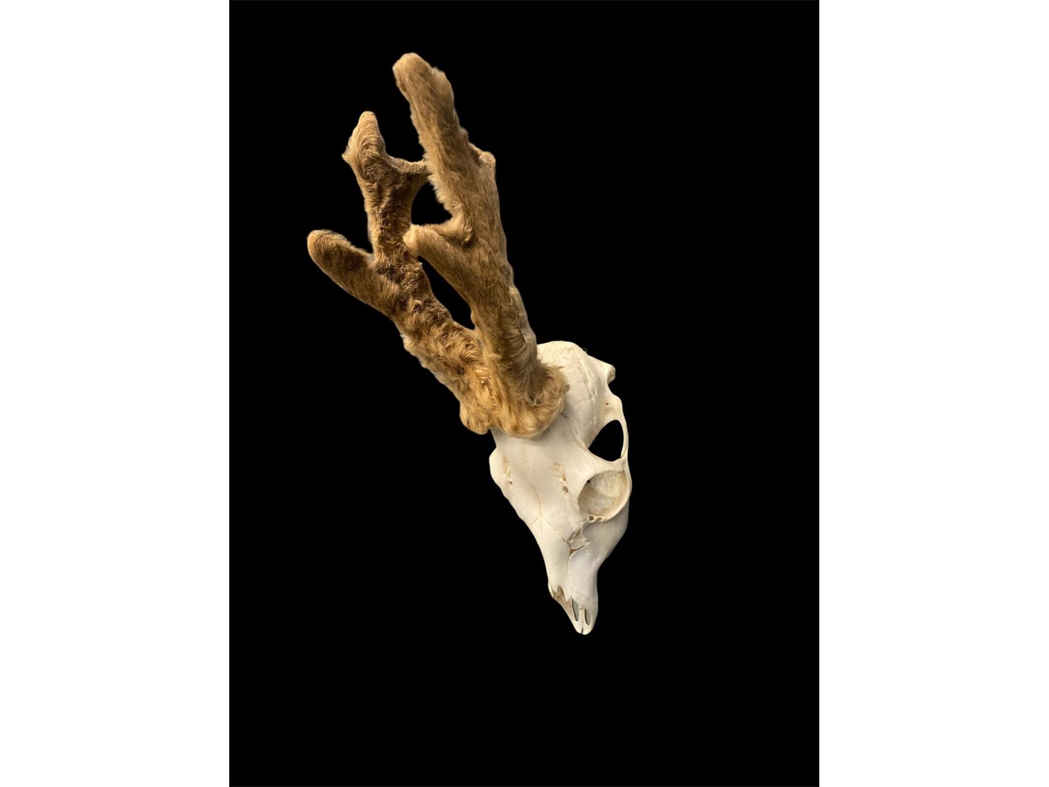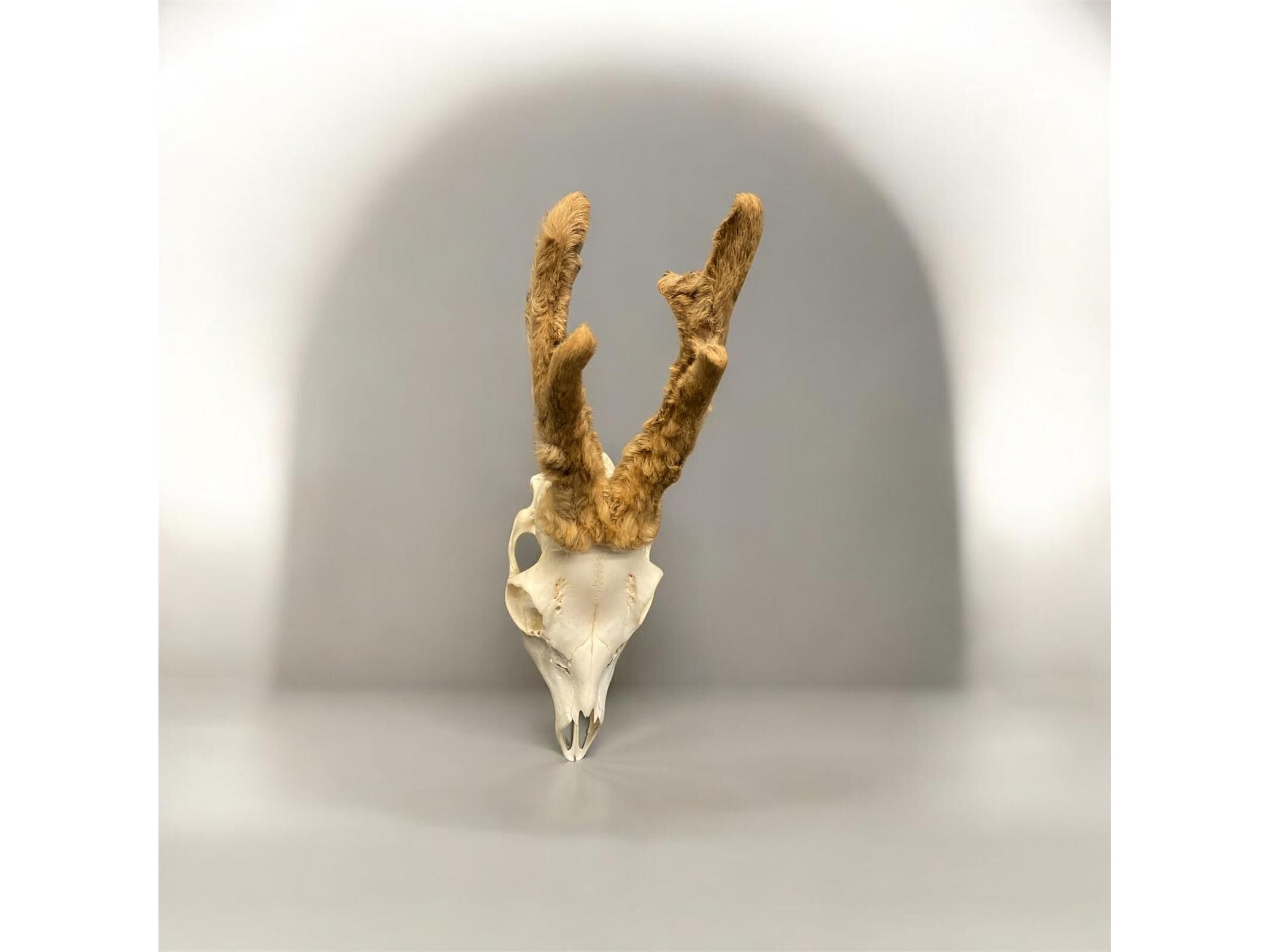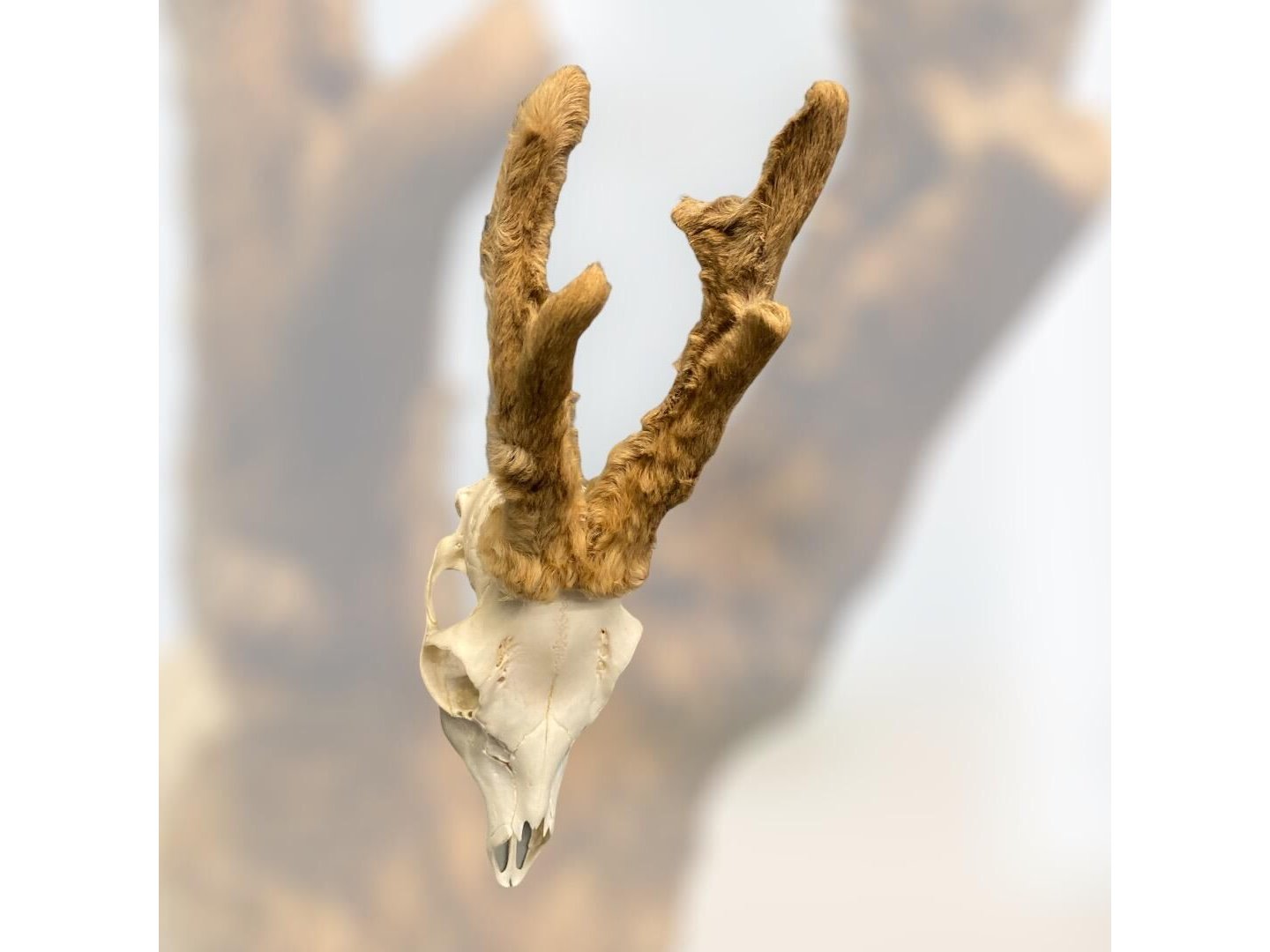 Ree - schedel met gewei met bast