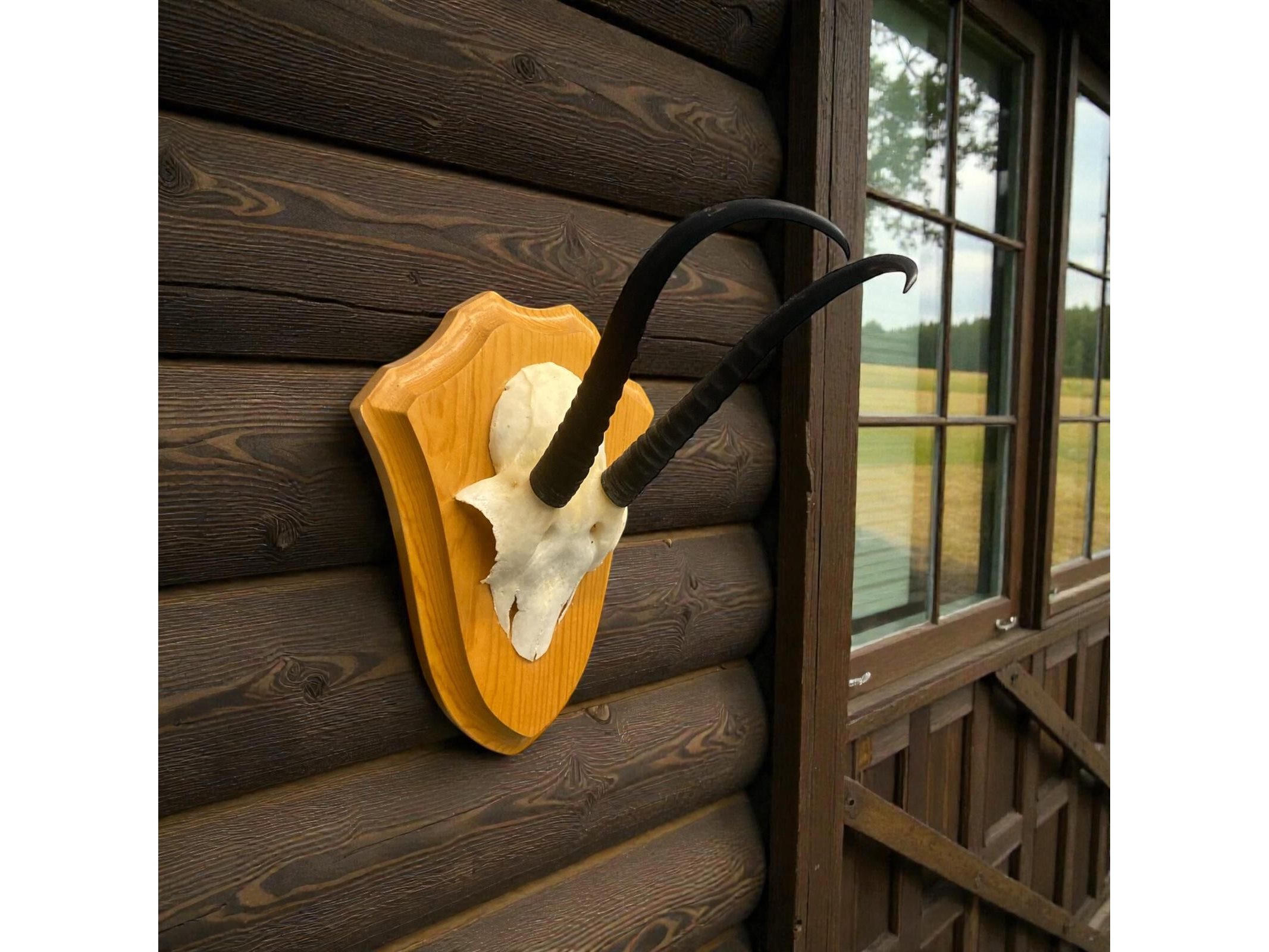 Bevestigd op houten wandplaat - Hoogte 30 cm. x Breedte 19 cm. x Diepte 20 cm.