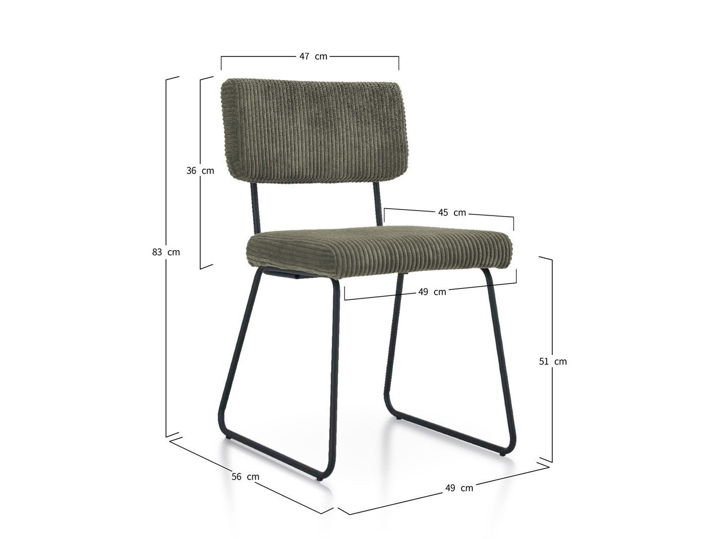 Ongeopende verpakking, 2 stuks eetkamerstoel metalen onderstel, witte ribbelstof