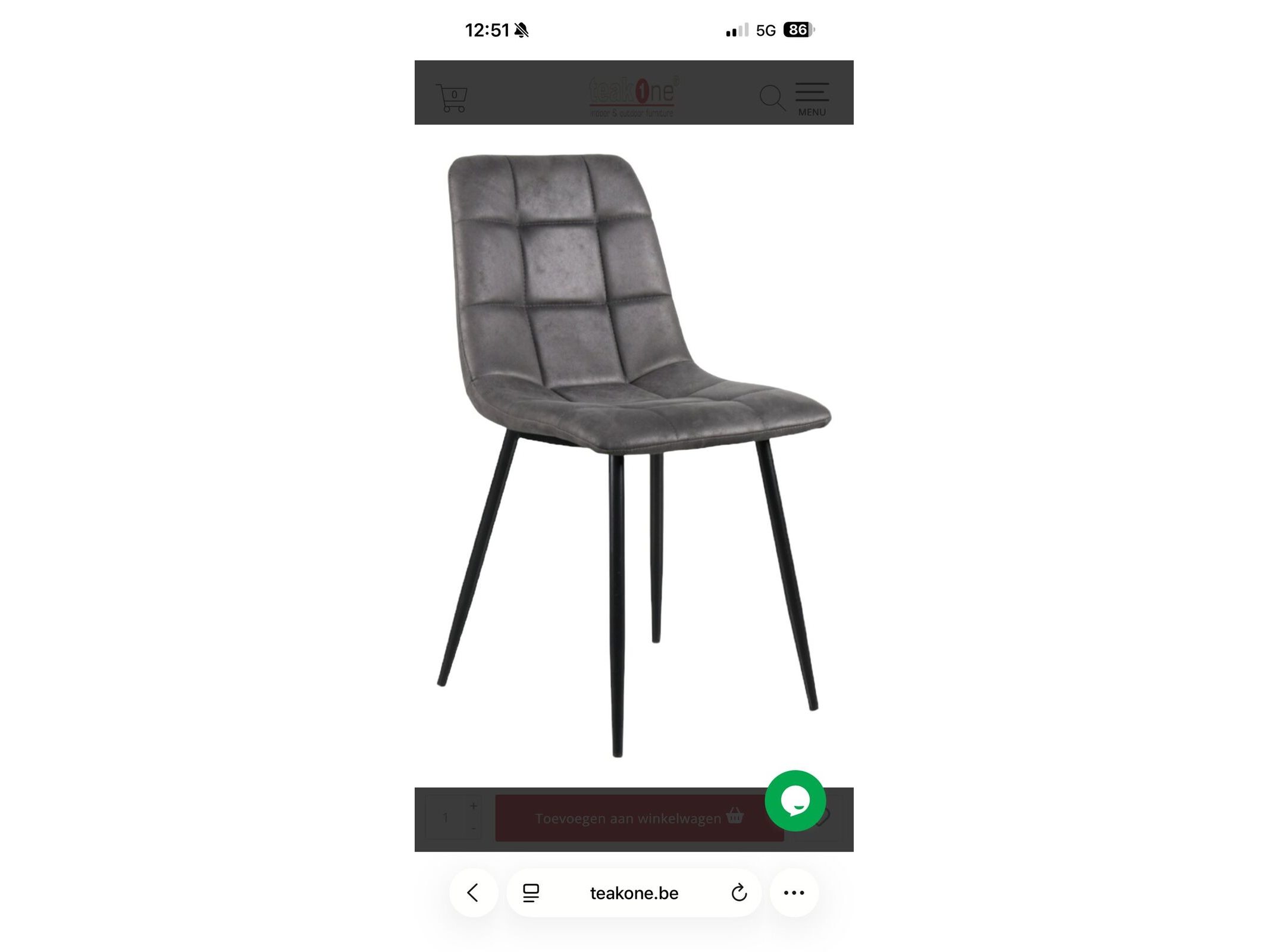 Ongeopende verpakking, 4 stuks eetkamerstoel antraciet microfiber met stalen onderstel