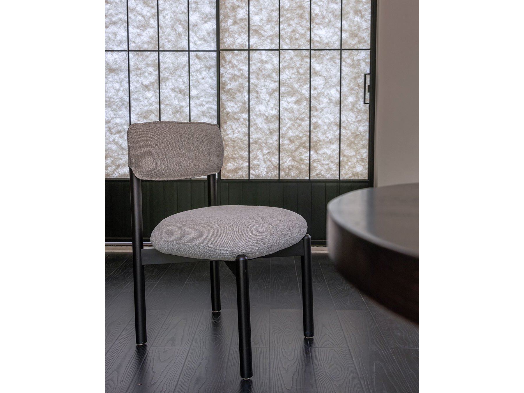 Ongeopende verpakking, 2 stuks eetkamerstoel essenhout, zwart afgewerkt met beige kussen