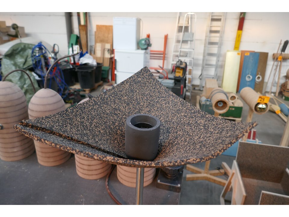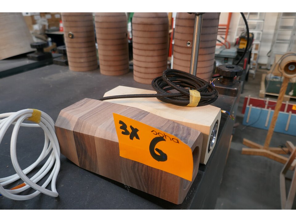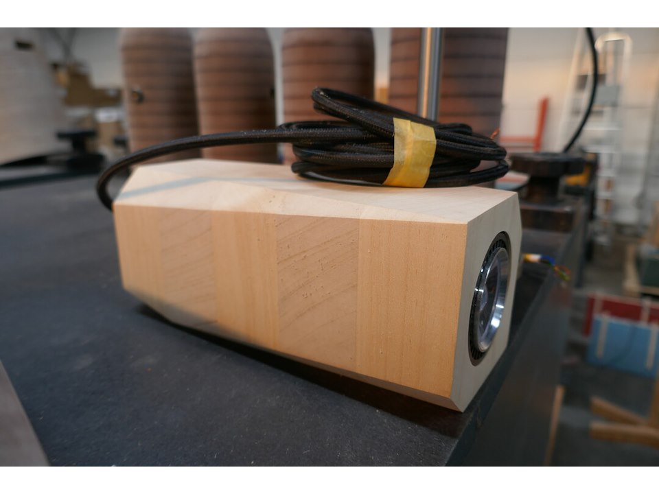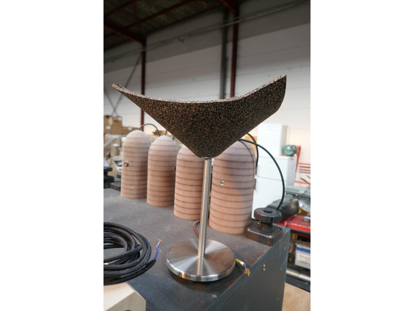 2 hanglampen gemengd hout met LED verlichting + metalen tafellamp met rubber kap <br /> *merk : DASSEIN