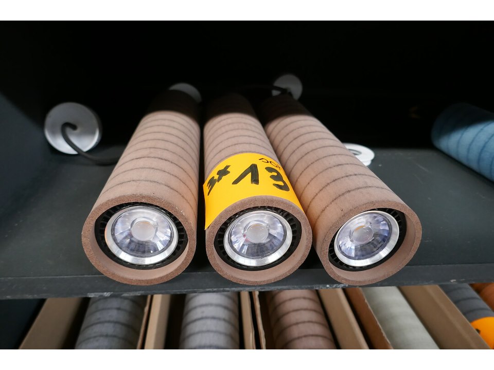 3 hanglampen bruine kleur met lijntjes INITIAL<br /> *merk : DASSEIN