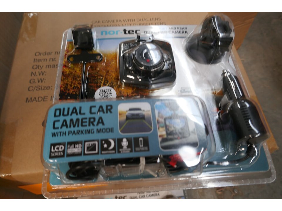 2 dual car camera's ( nog in verpakking ) <br /> *merk : NOR-TEC<br /> Doos met reeks plastieken rangeerbakjes