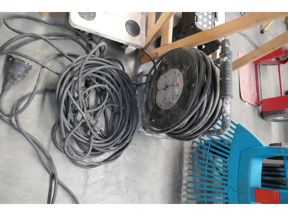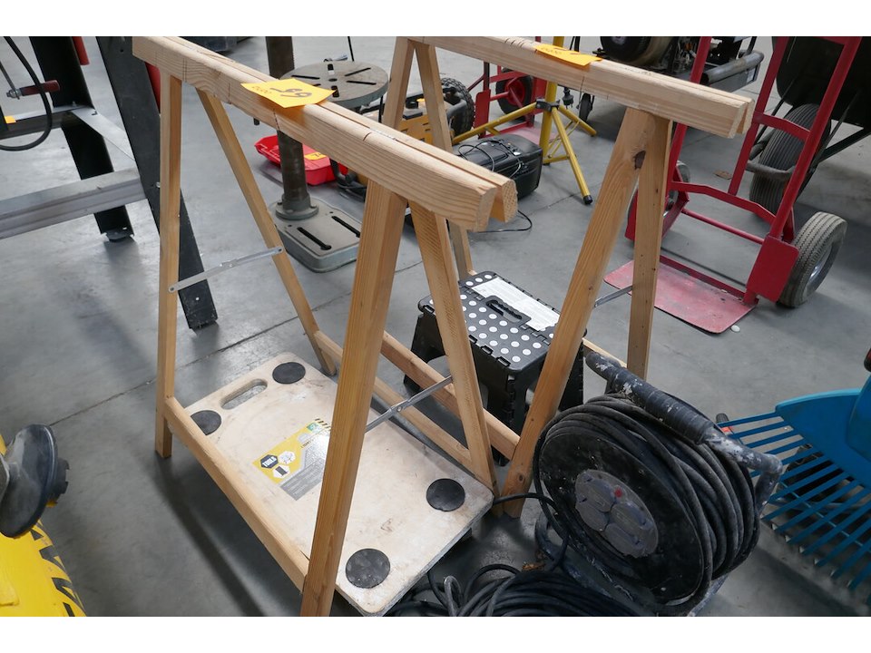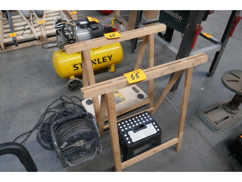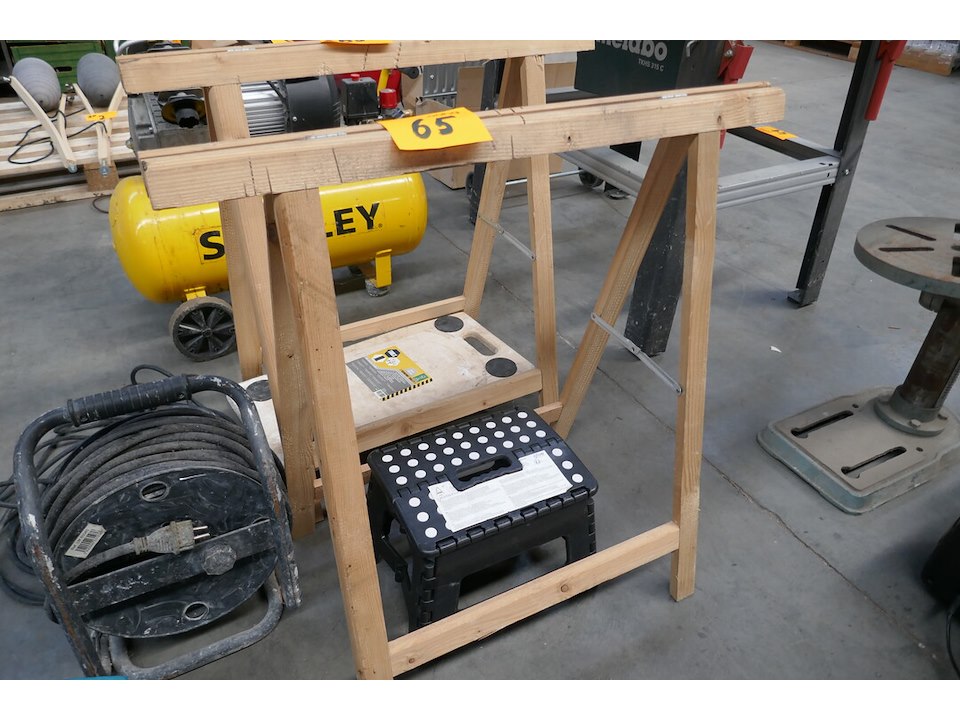 2 houten schragen - verhuiskar - opkrikje - verlengkabel - verlengkabel op haspel