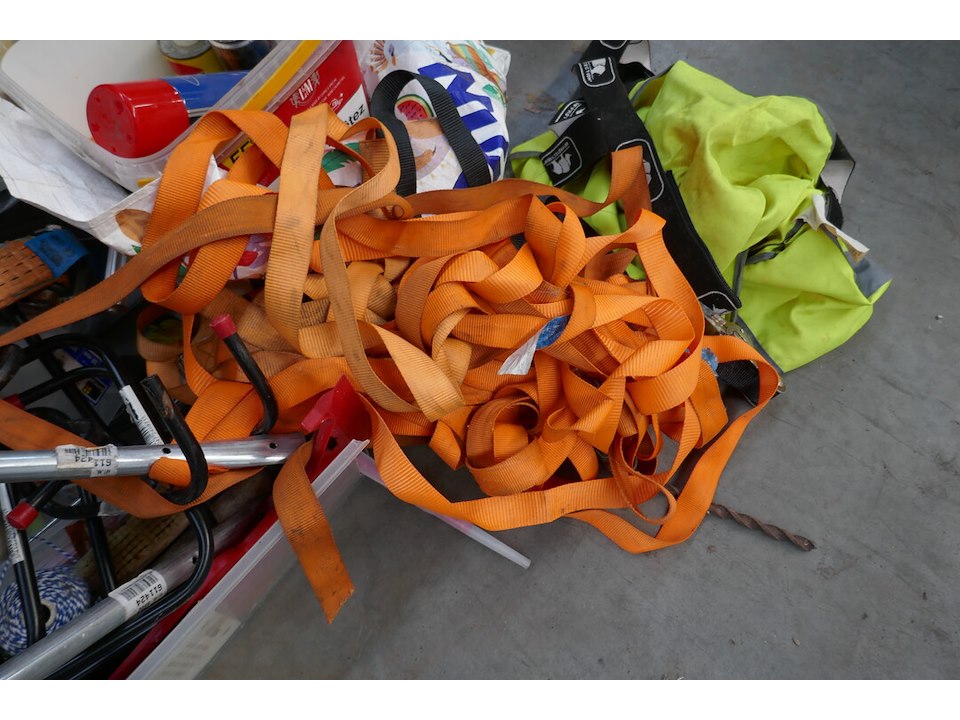 Fietspomp en helm - touwzak - fietselastieken - spanbanden - fluohasjes - muurhaken - enz…
