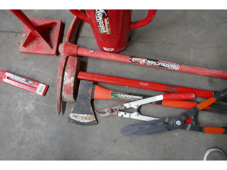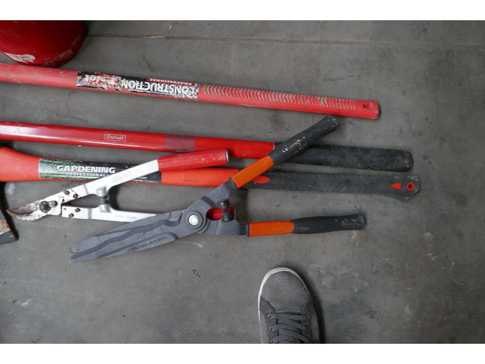 Tuinmateriaal : palenrammer - grondstammer - boomhak - heggenschaar - enz…<br /> *merk : GARDENING