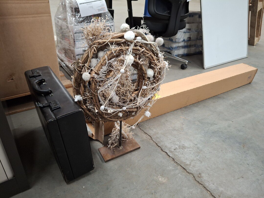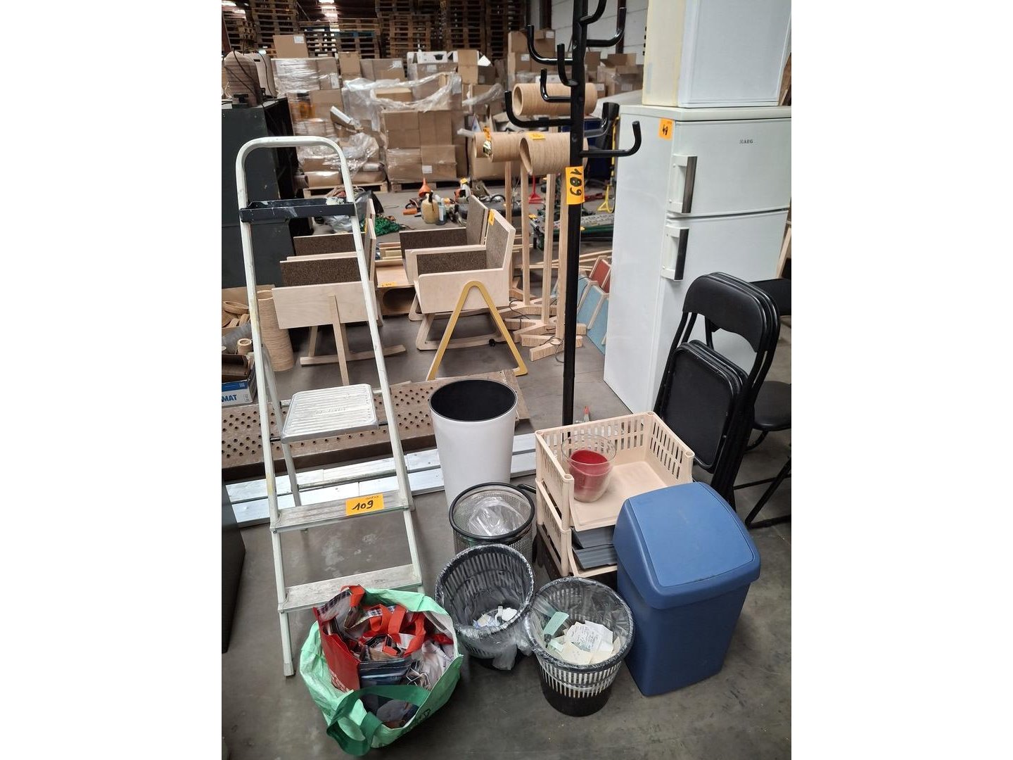 Trapladder - kapstok - papiermanden - papierbakken - vintage koffers - herfstkrans - staaflampen - enz…