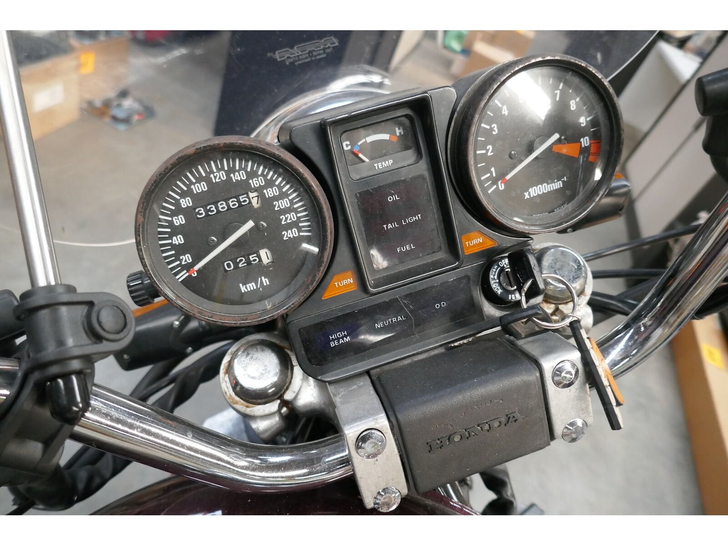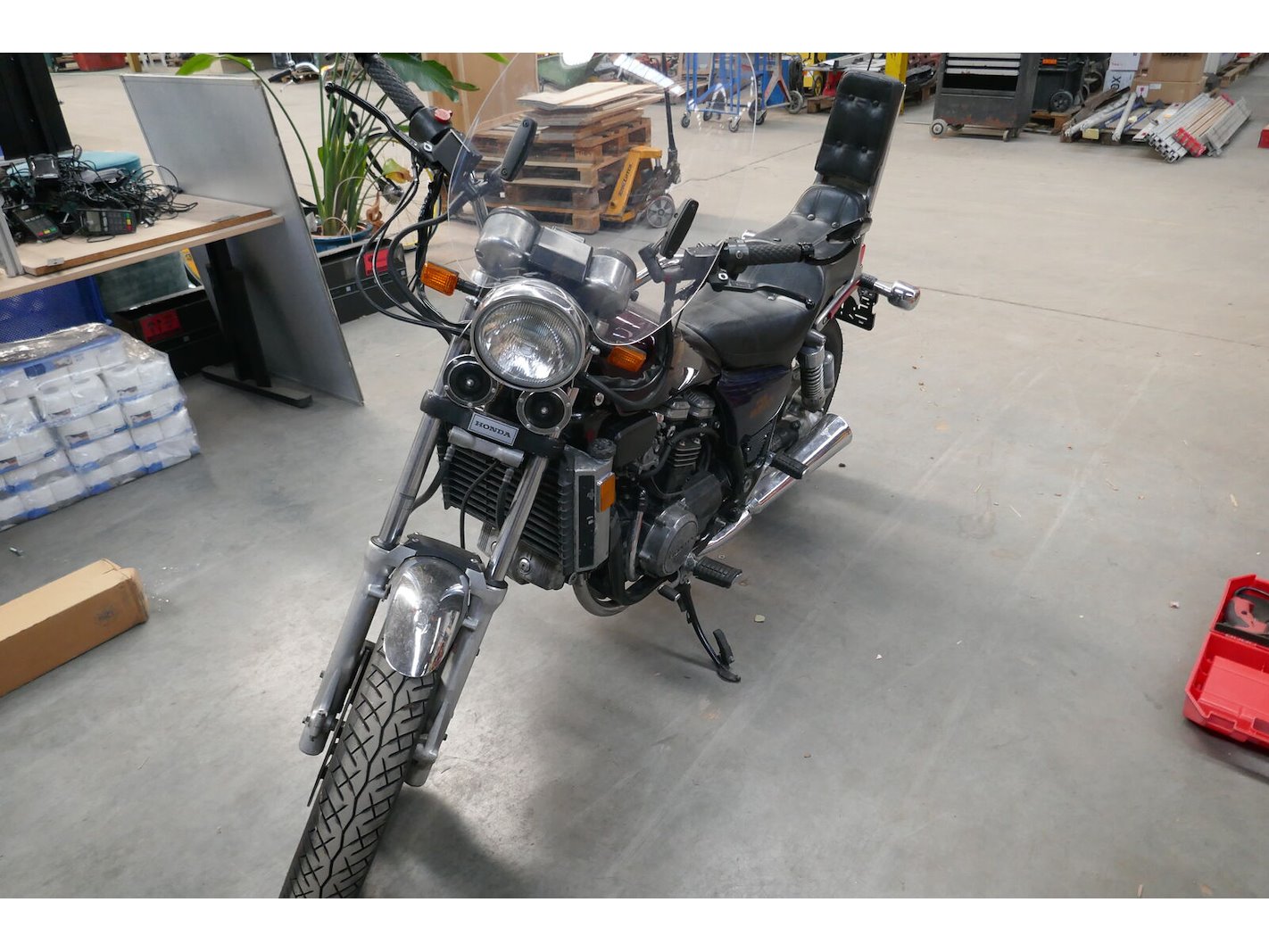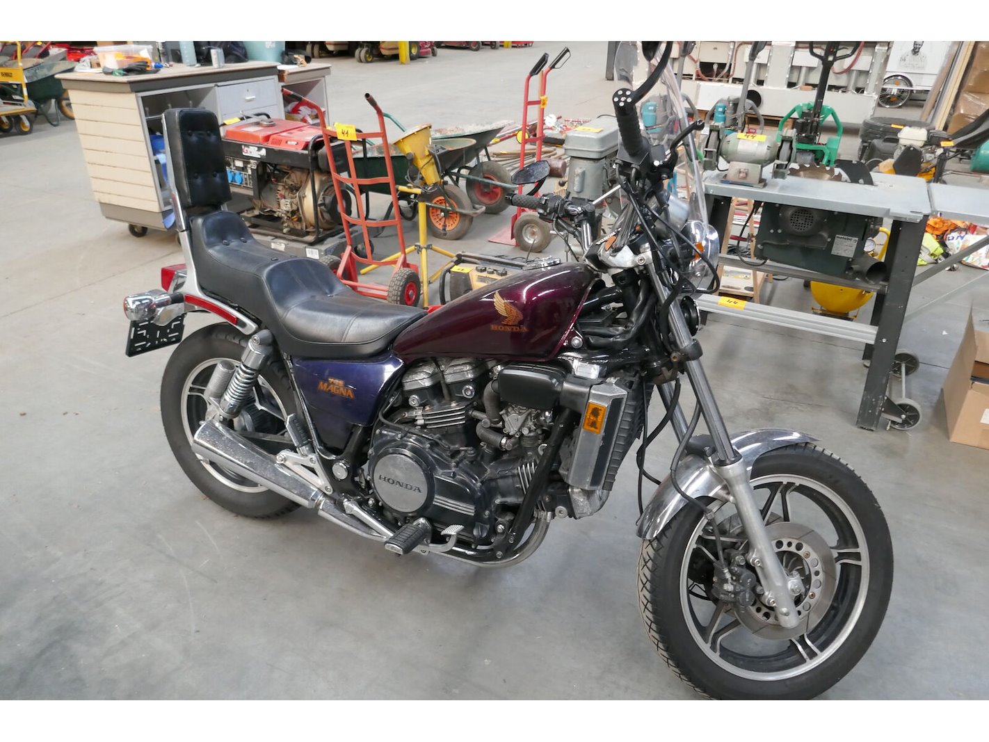 Old timer MOTORFIETS,<br /> Merk : HONDA V45 magma<br /> type : VF-700-C<br /> Model : RC21E<br /> Chassisnummer : JH2 RC2 101 EM 005 952<br /> 1e inschrijving : 16-10-1984<br /> Km-stand: 33865 km op teller<br /> Motor : 748 cm³ | 57 kW | benzine | euro ..<br /> HTG : nvt | Laadvermogen : nvt<br /> Uitvoering : <br /> Zitplaatsen : 2<br /> Documenten : OK <br /> Sleutels : ja ( ook dubbel sleutel ) <br /> *Bijhorende lederen motorjas - merk, RICHA maat 58/48