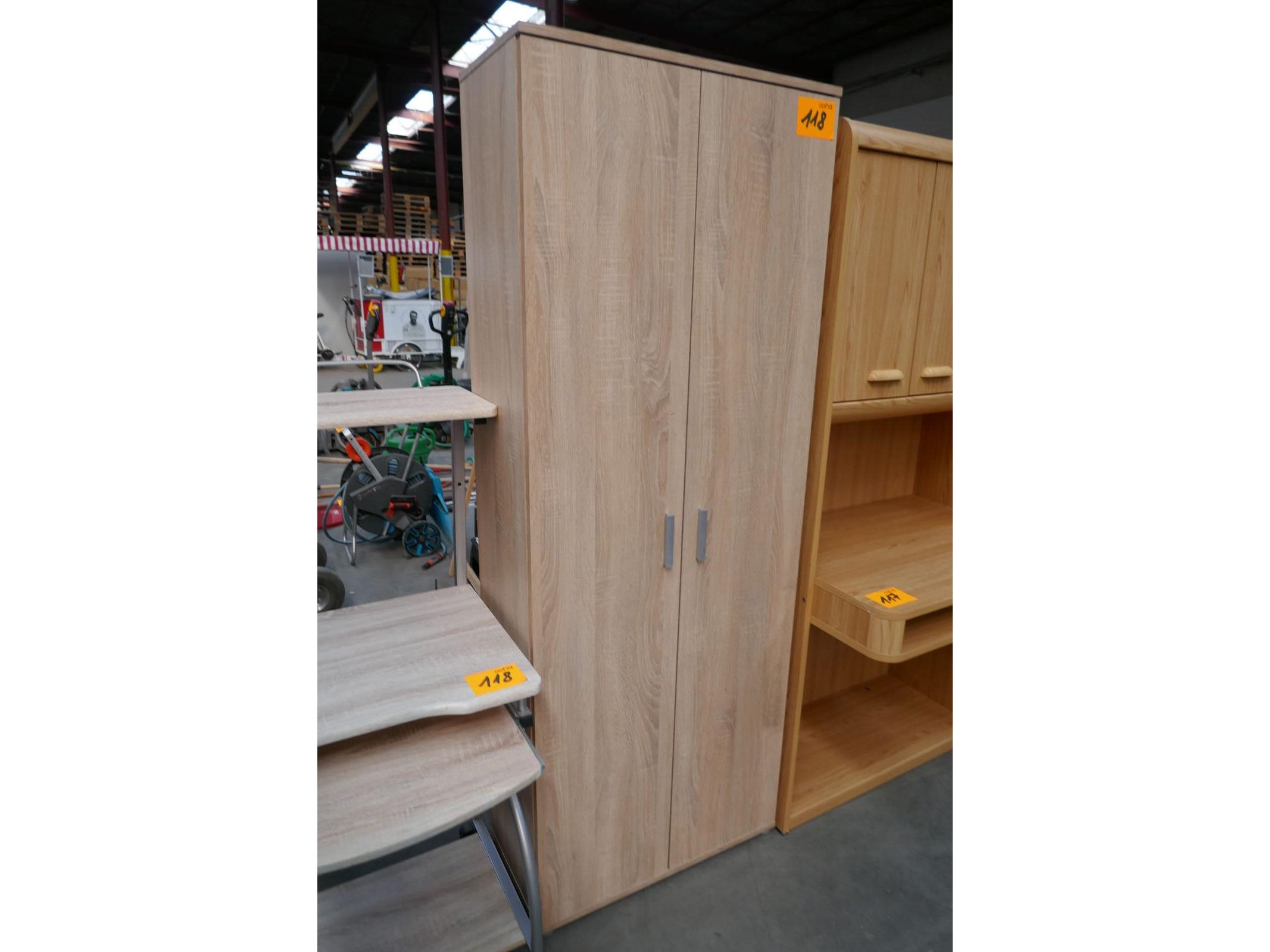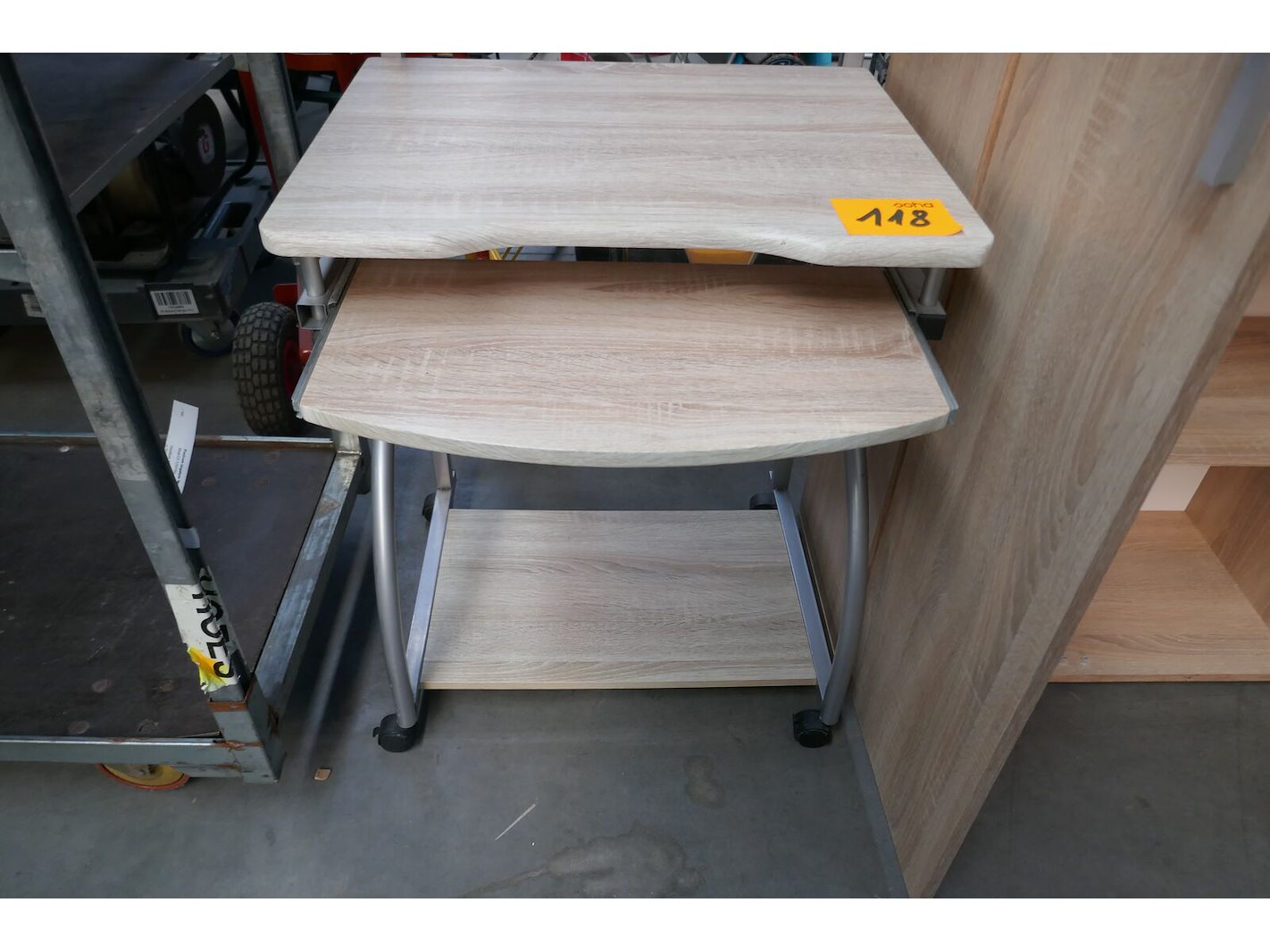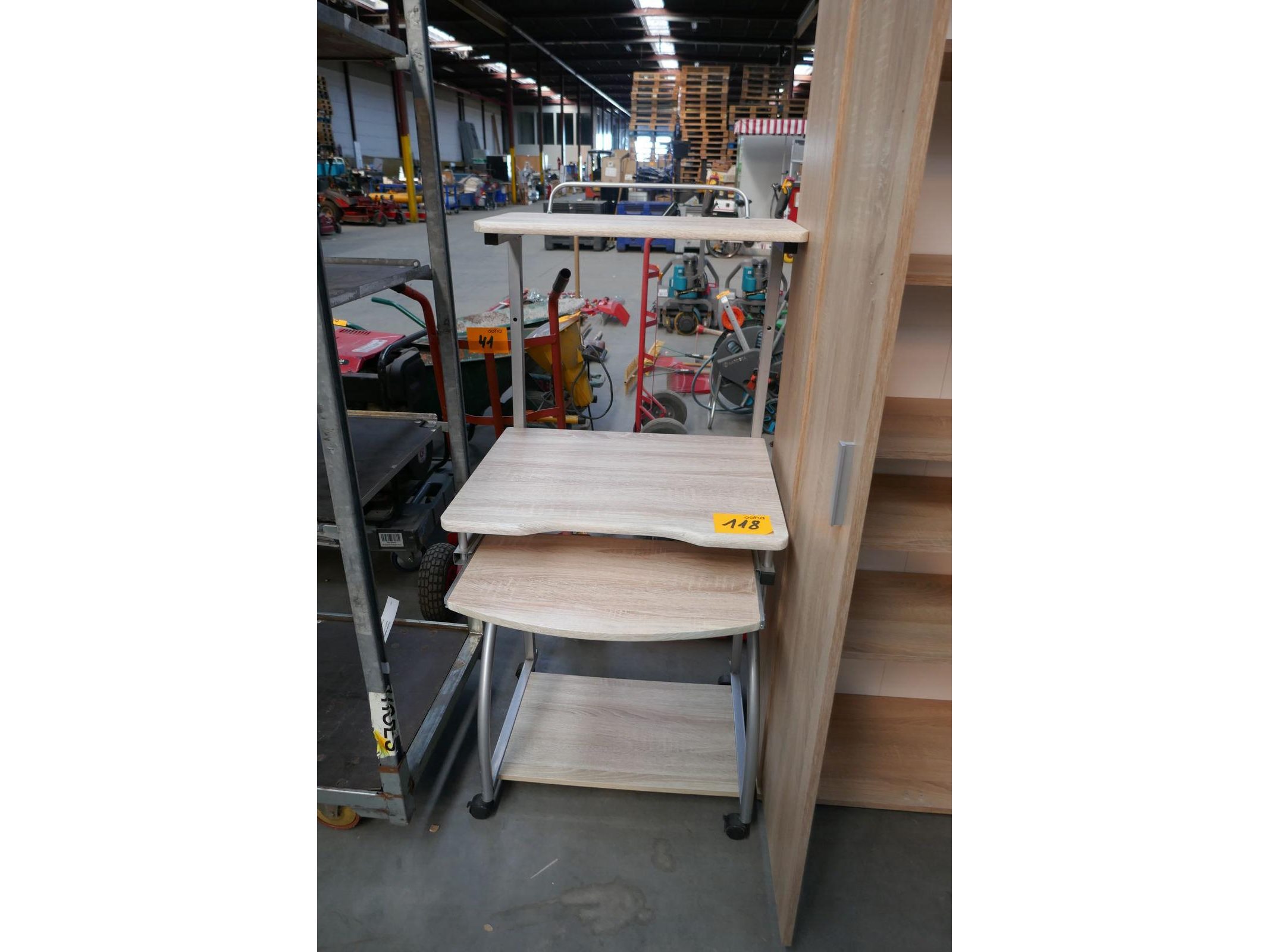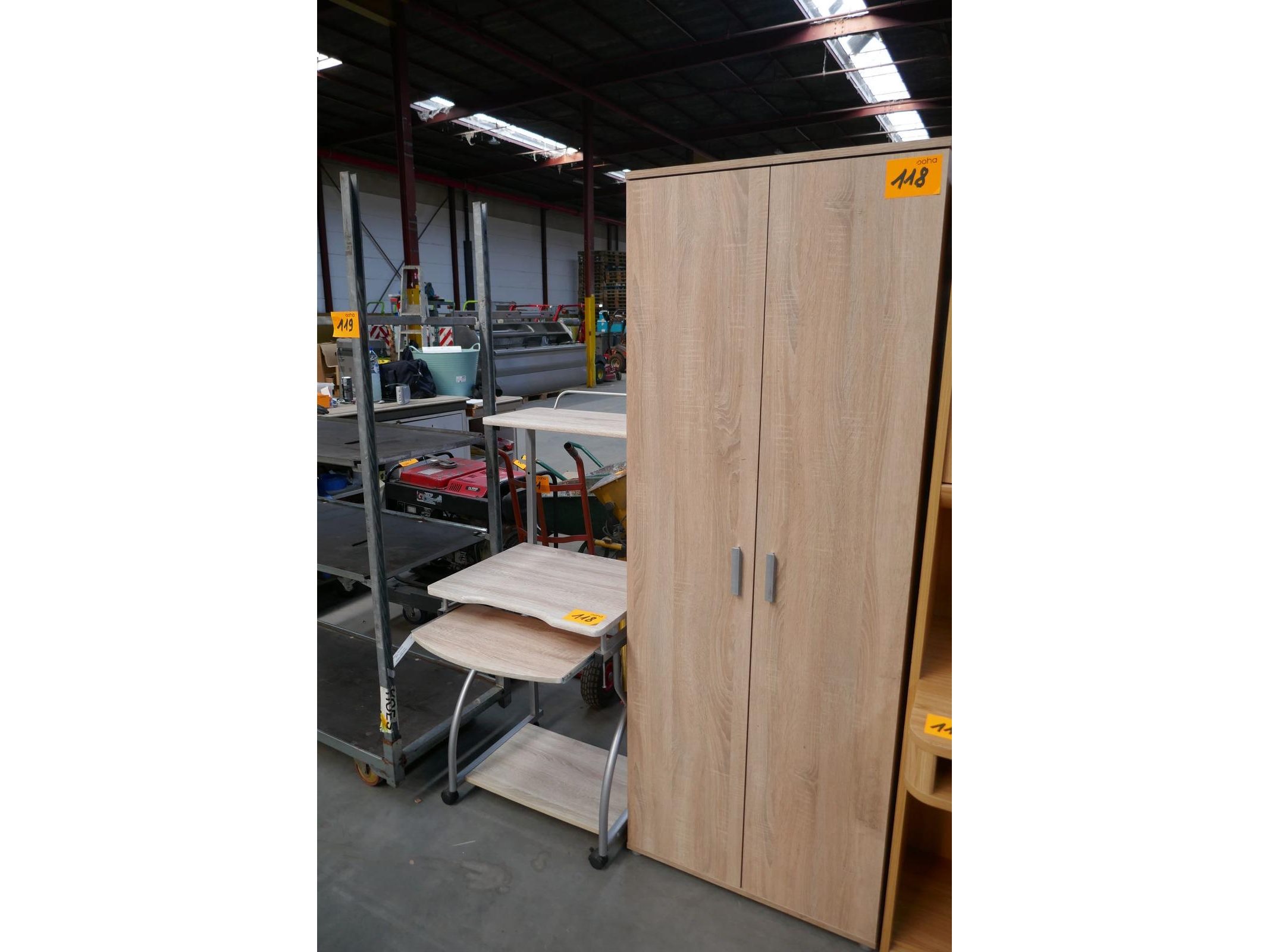 Verrijdbare computerbureau + bijhorende bureaustoel <br /> Houten kast met 2 deuren en 5 legborden