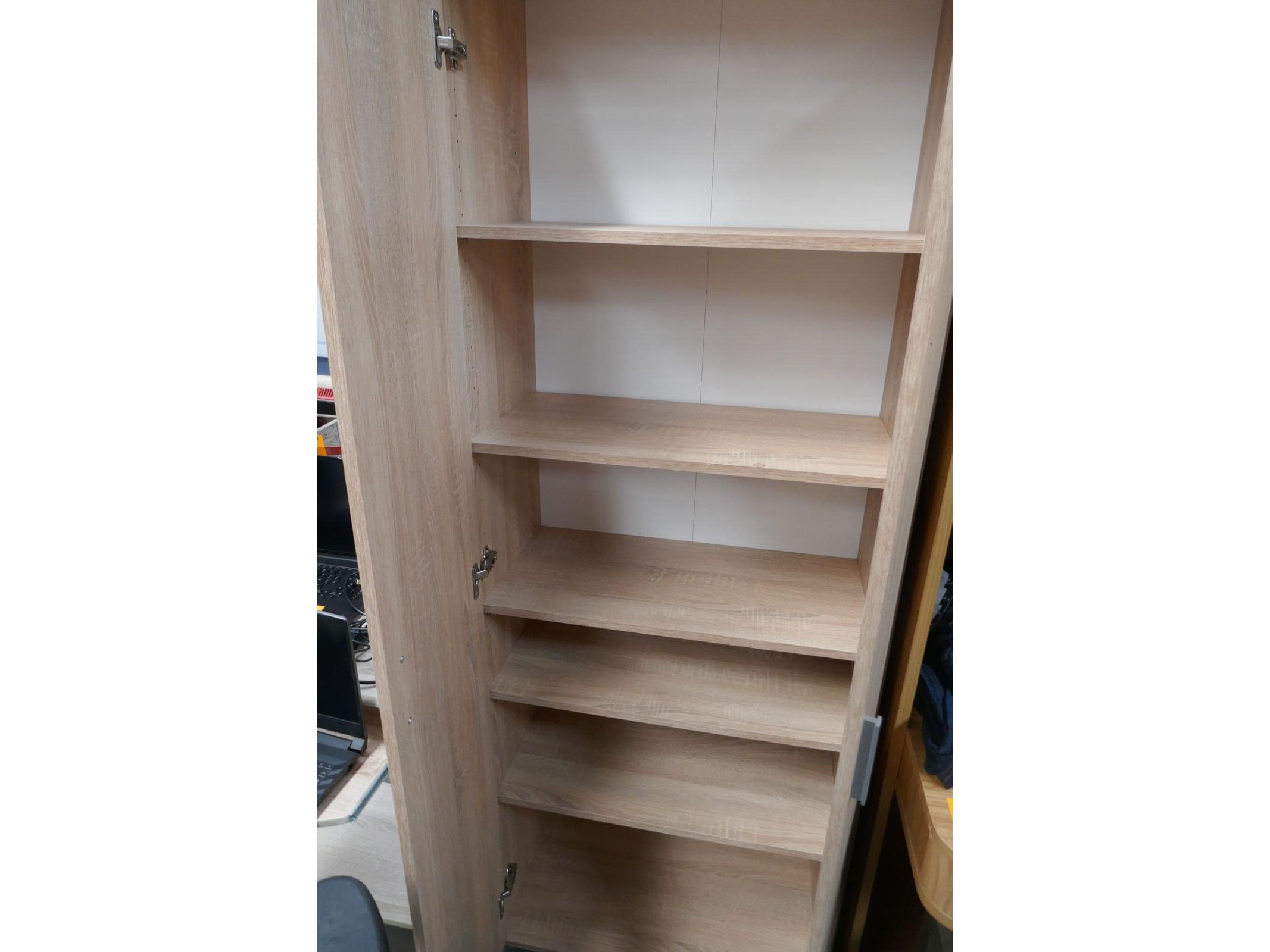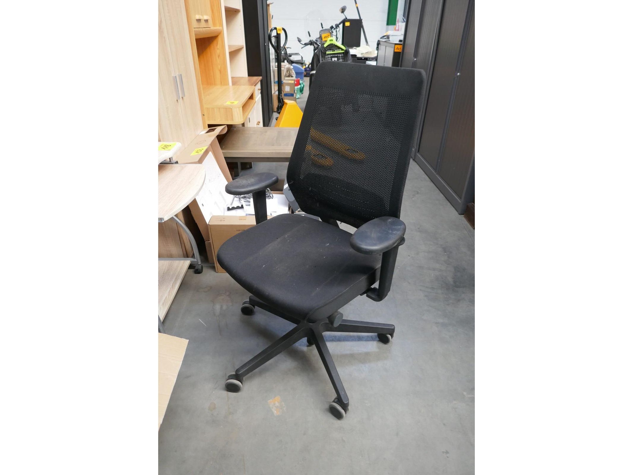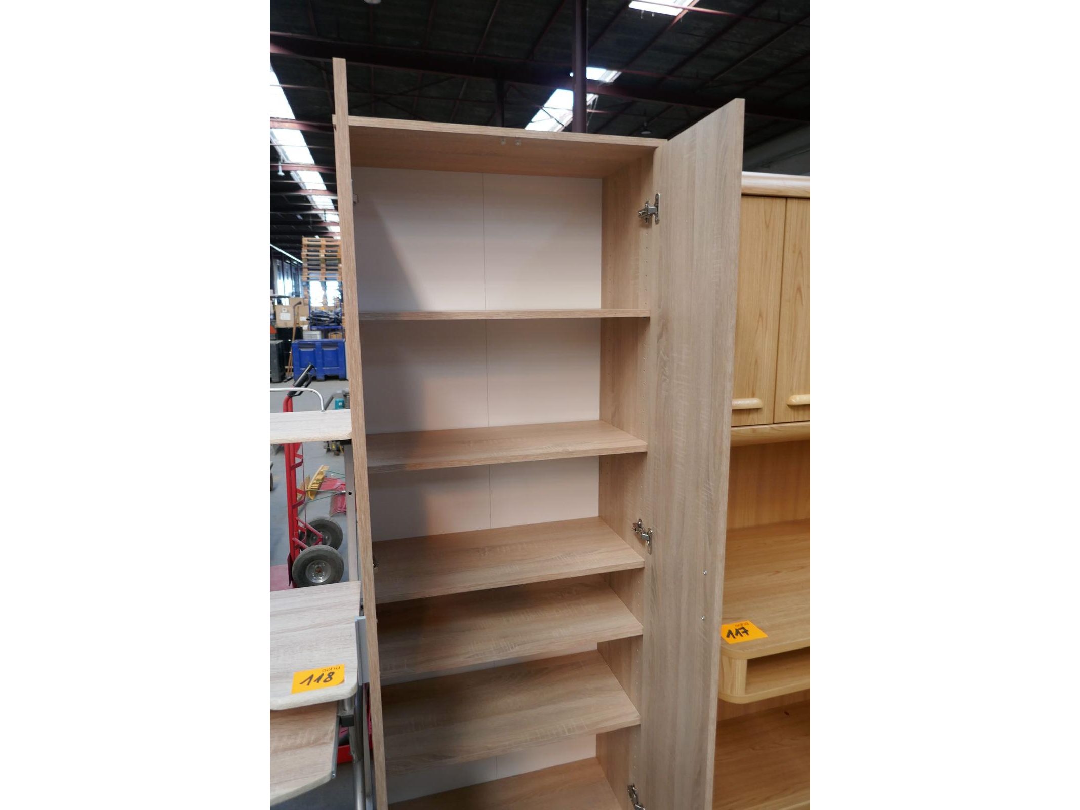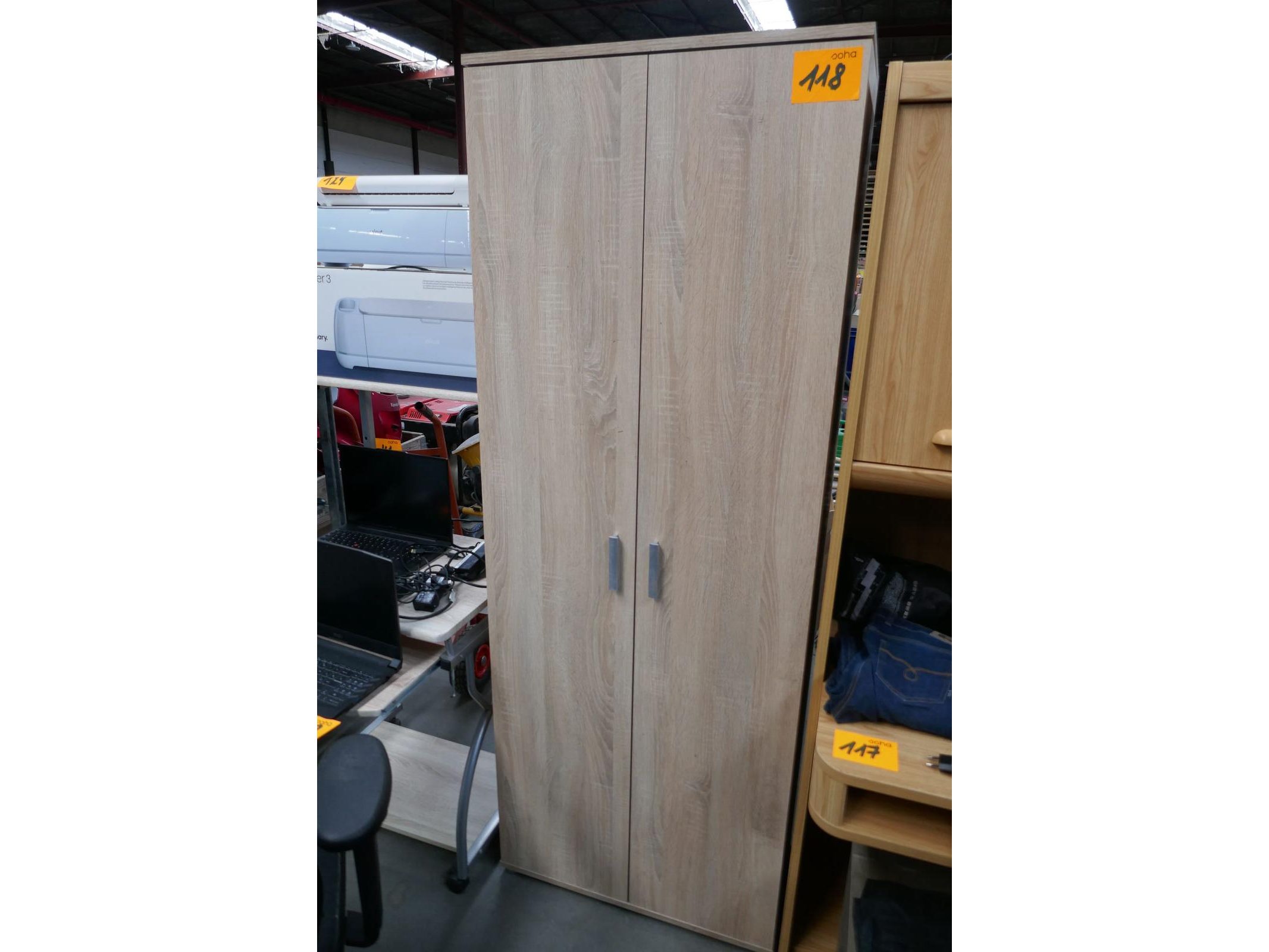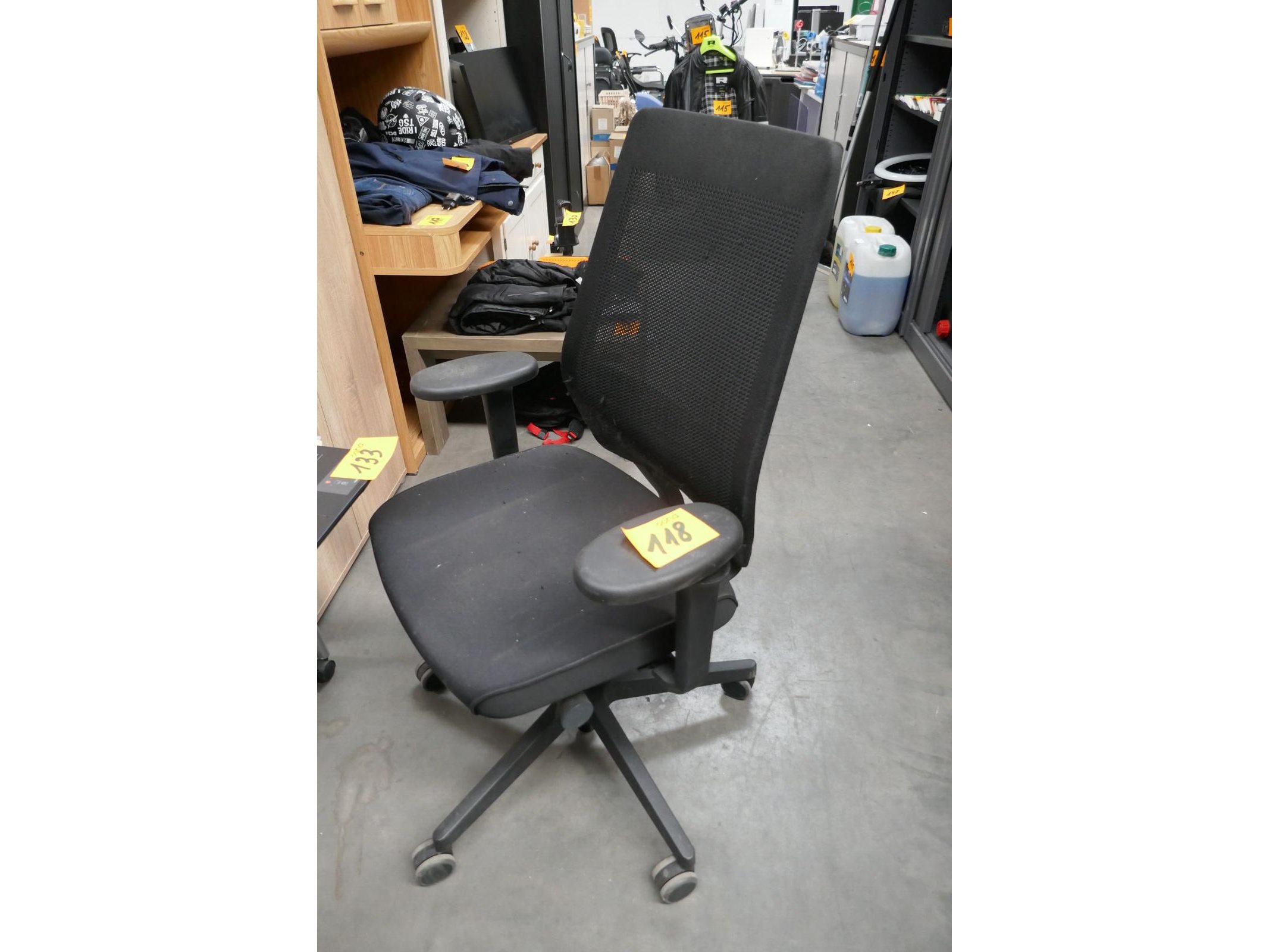 Verrijdbare computerbureau + bijhorende bureaustoel <br /> Houten kast met 2 deuren en 5 legborden