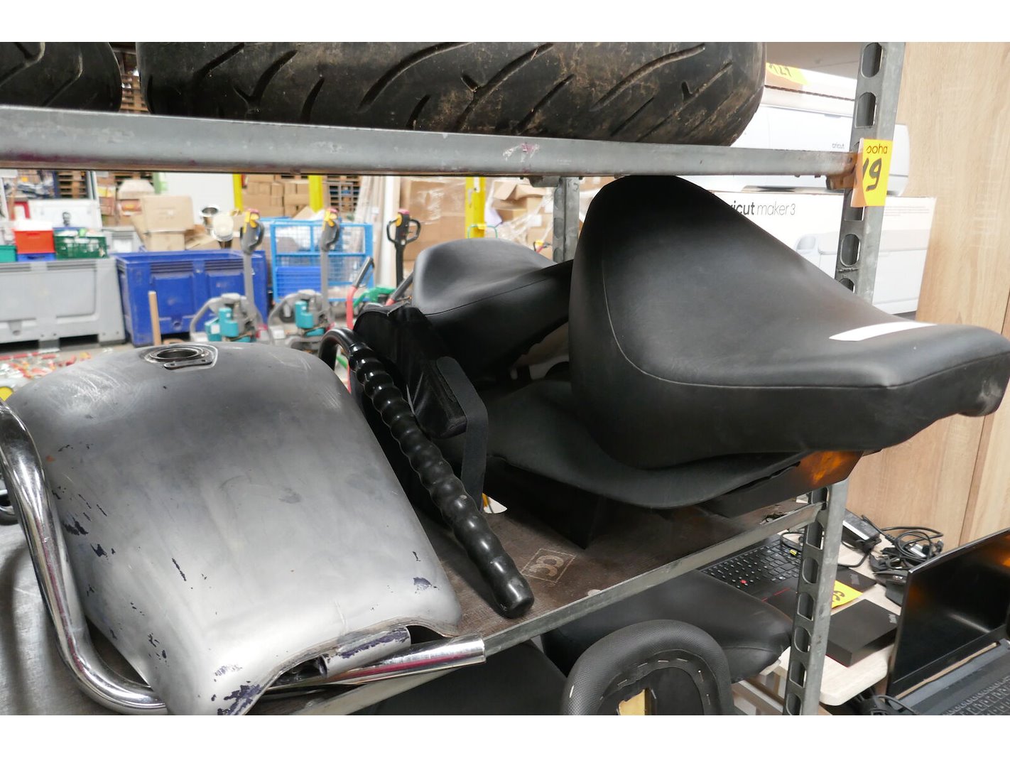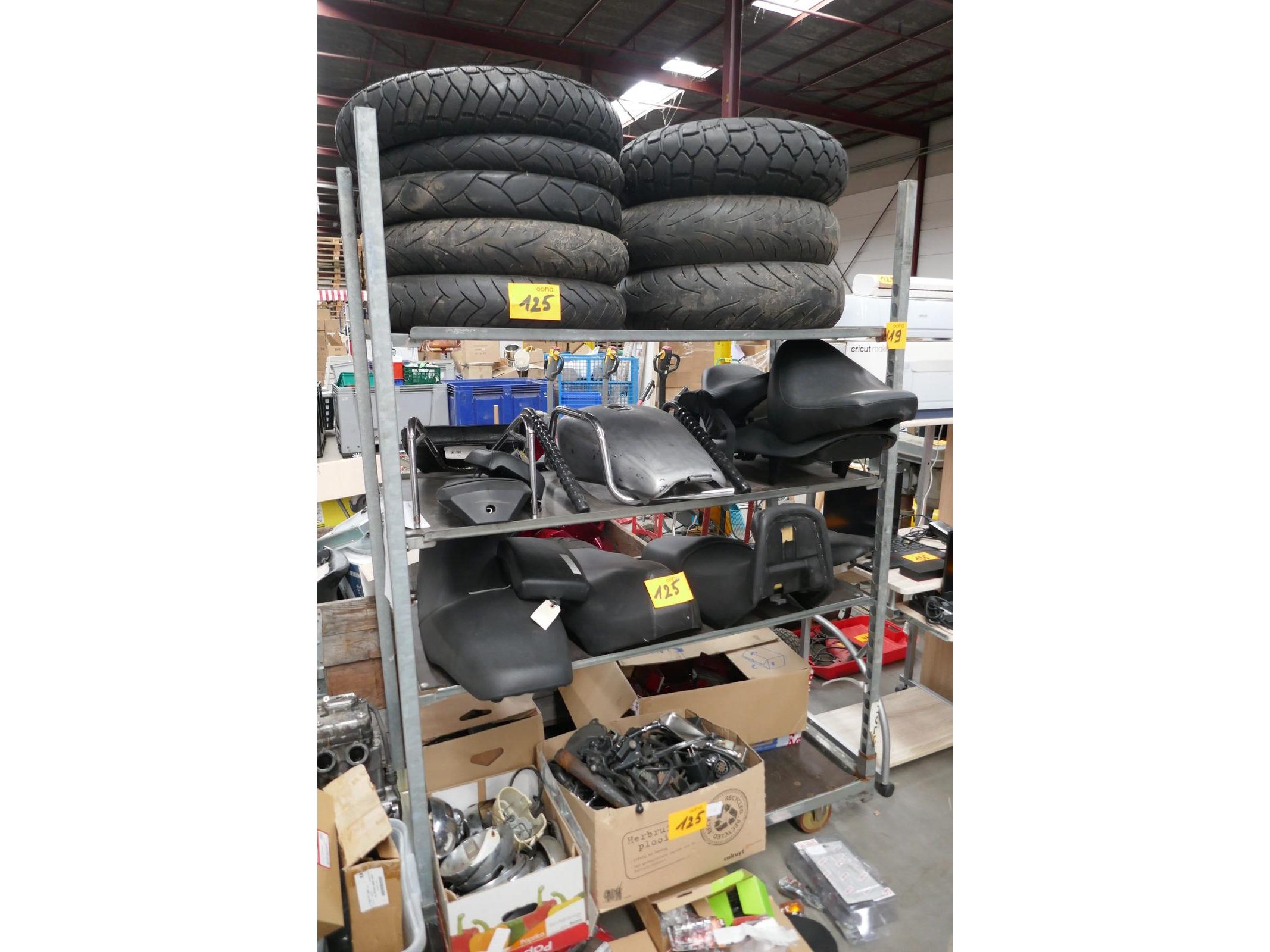 Allerhande moto onderdelen : banden - motozadels - lichten - complete motor - chassis - enz…. ( zie fotos ) GRAAG TE BEZICHTIGEN