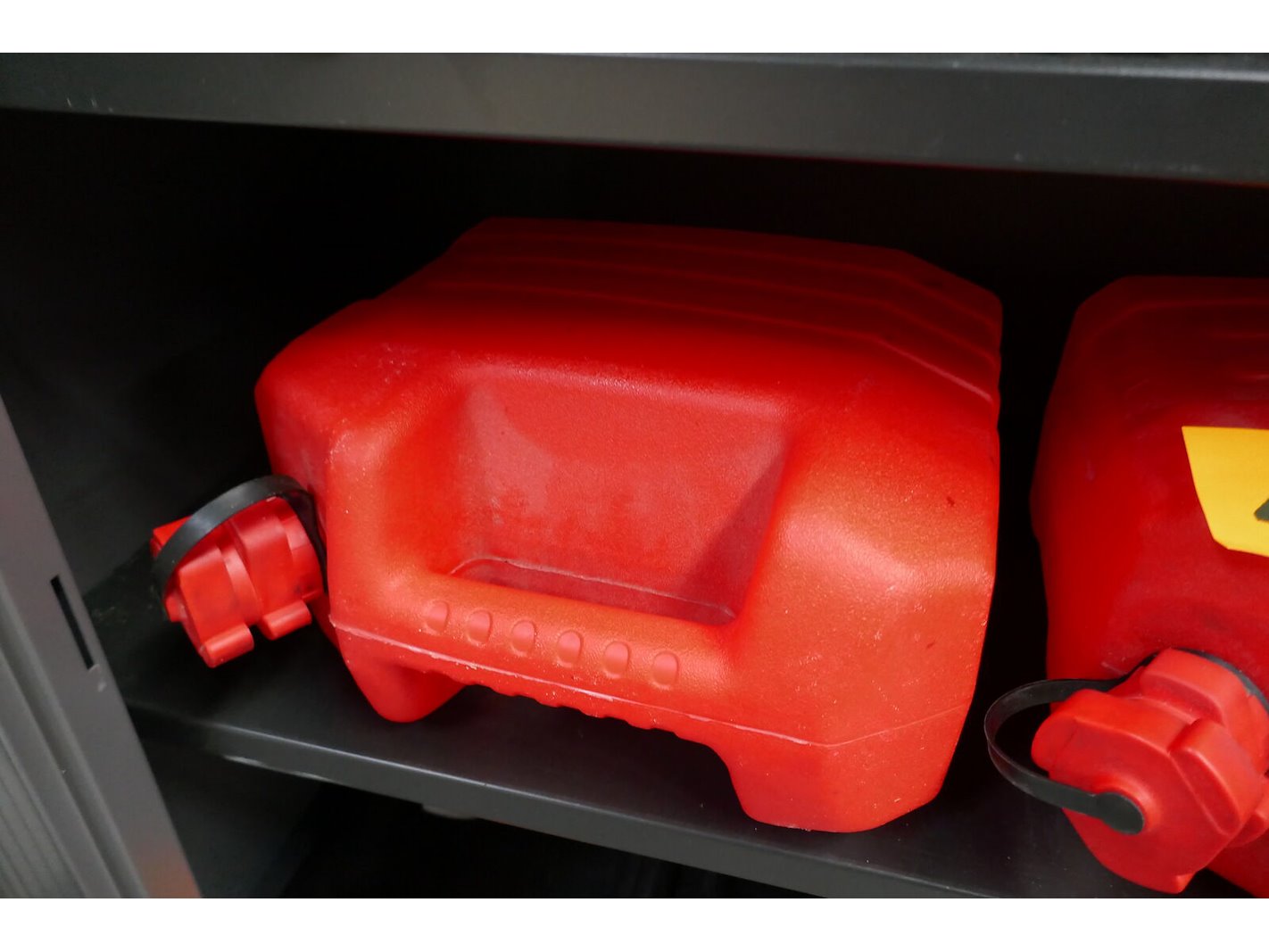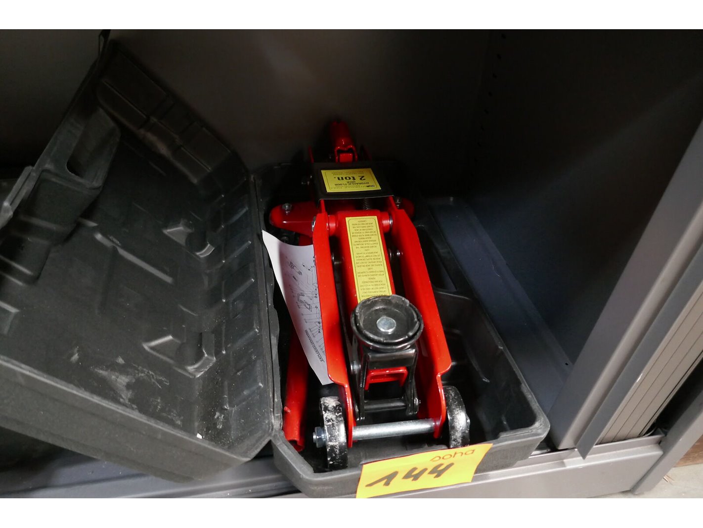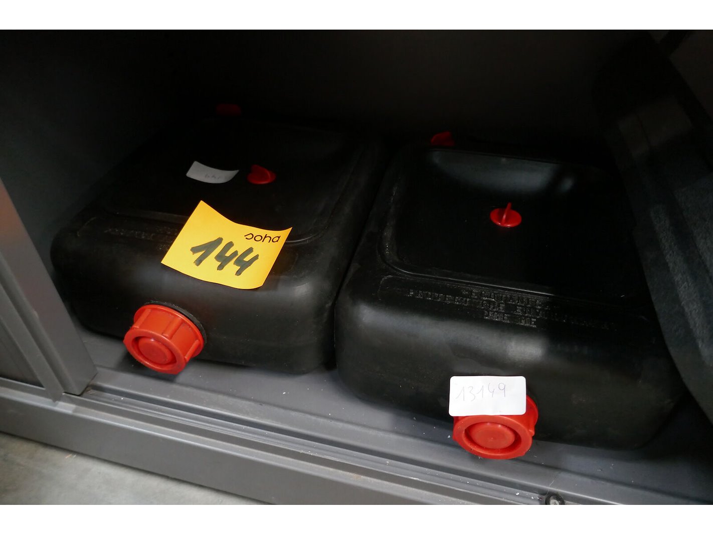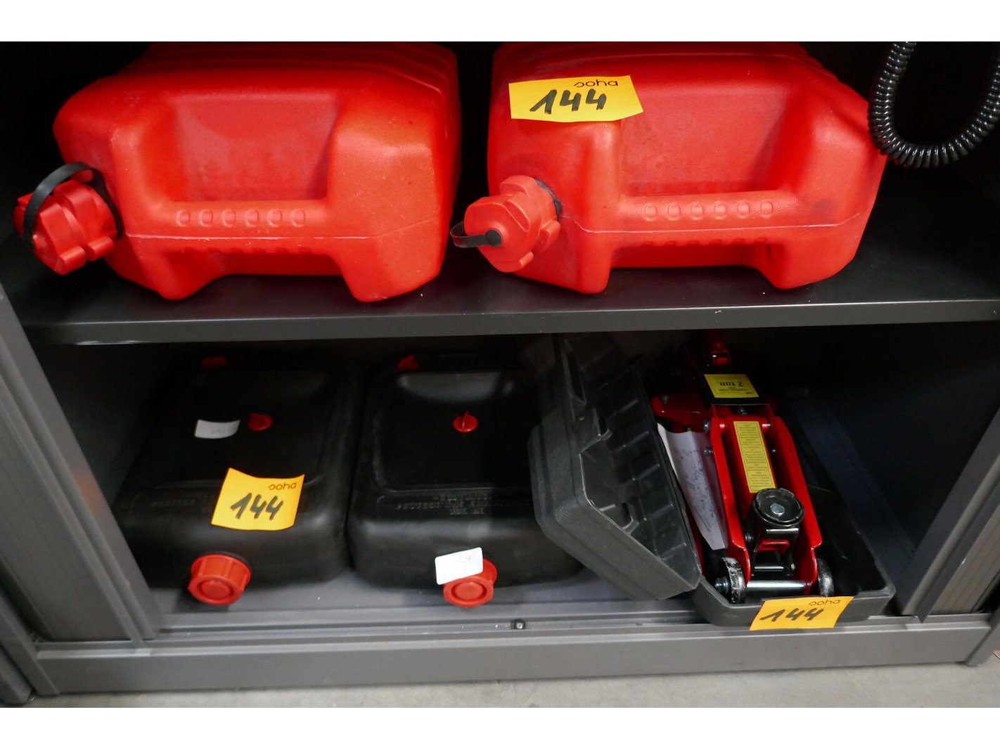 2 opvangbakken voor olie<br /> 2 plastieken bidons rode kleur<br /> Garagekrik 2 ton