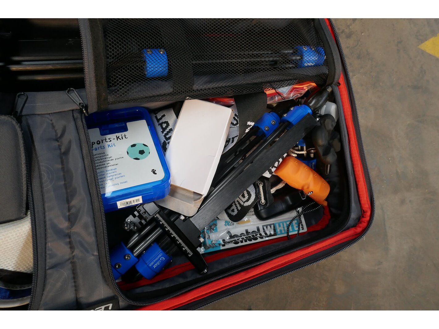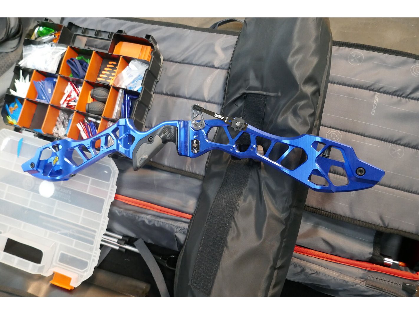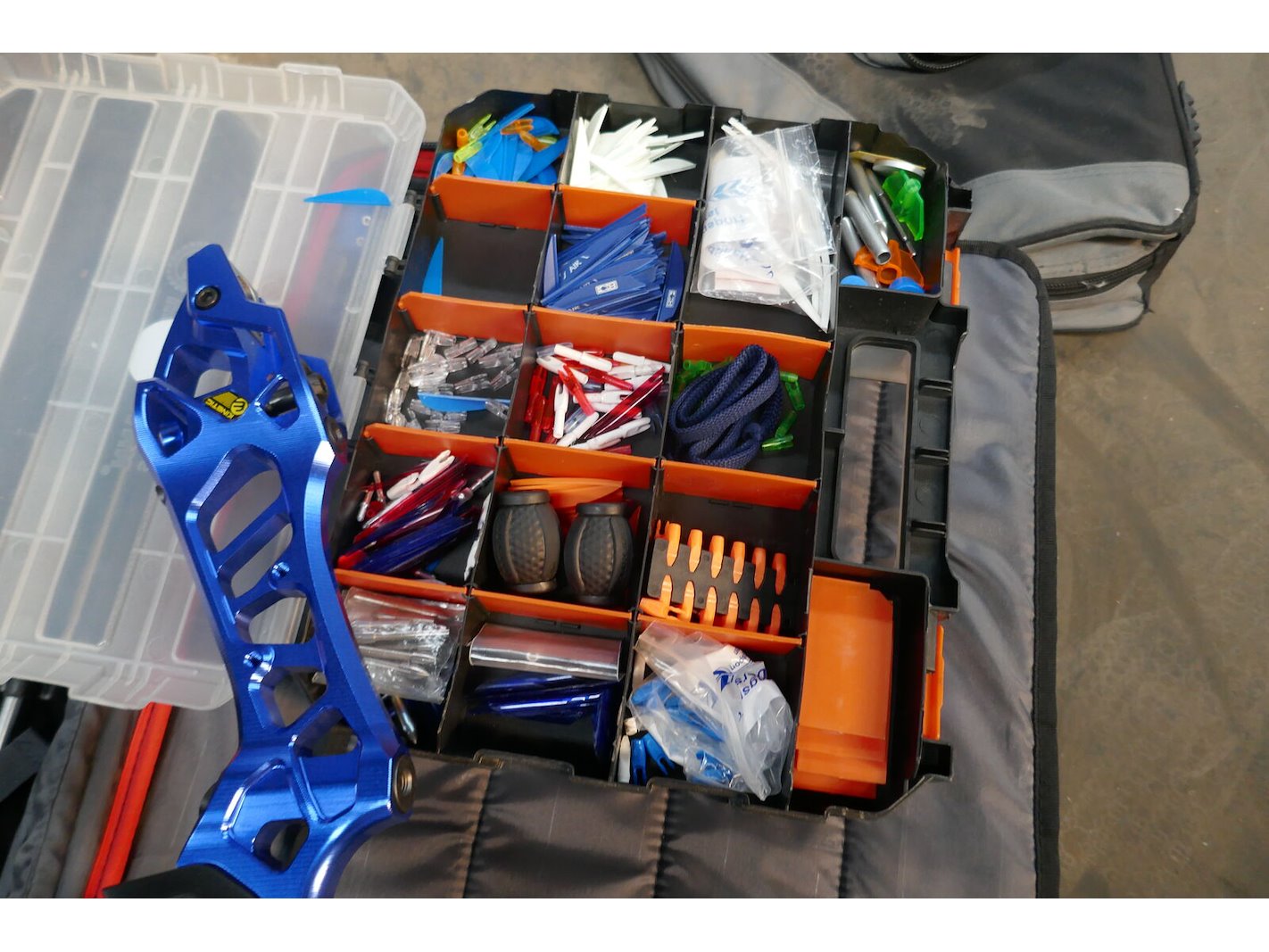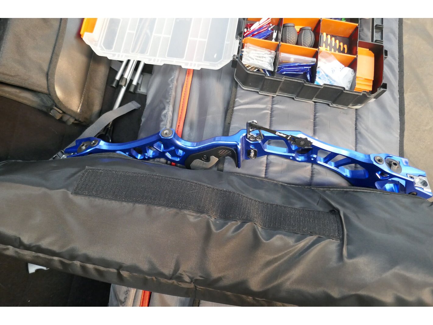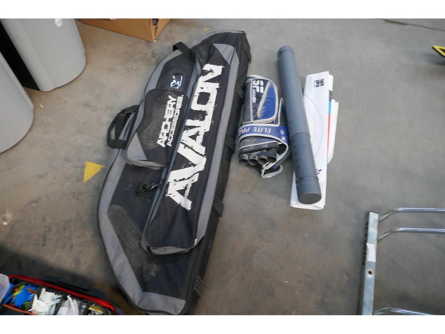 Verrijdbare koffer met boog en alle toebehoren<br /> *merk : ATOM<br /> Draagtas voor bogen + pijlenset