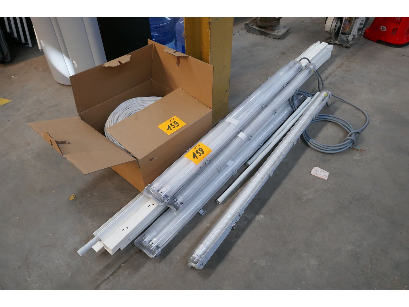 Verlichtingsarmaturen - staaflampen<br /> kabeldozen + rol CAT 6 network cable