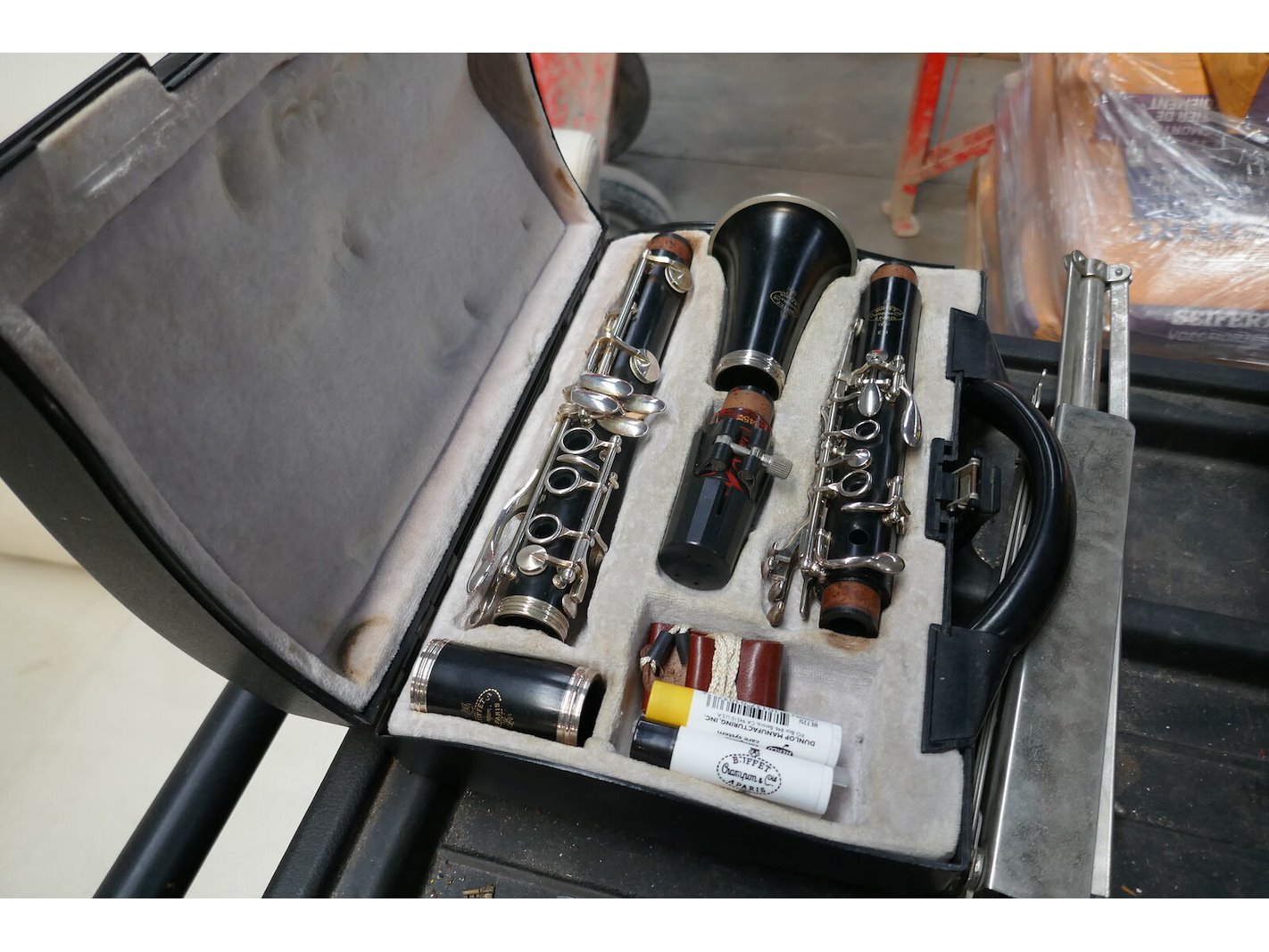 Klarinet in koffer - merk, BUFFET Crampon & cie <br /> Partiturenstatief met onderdelen