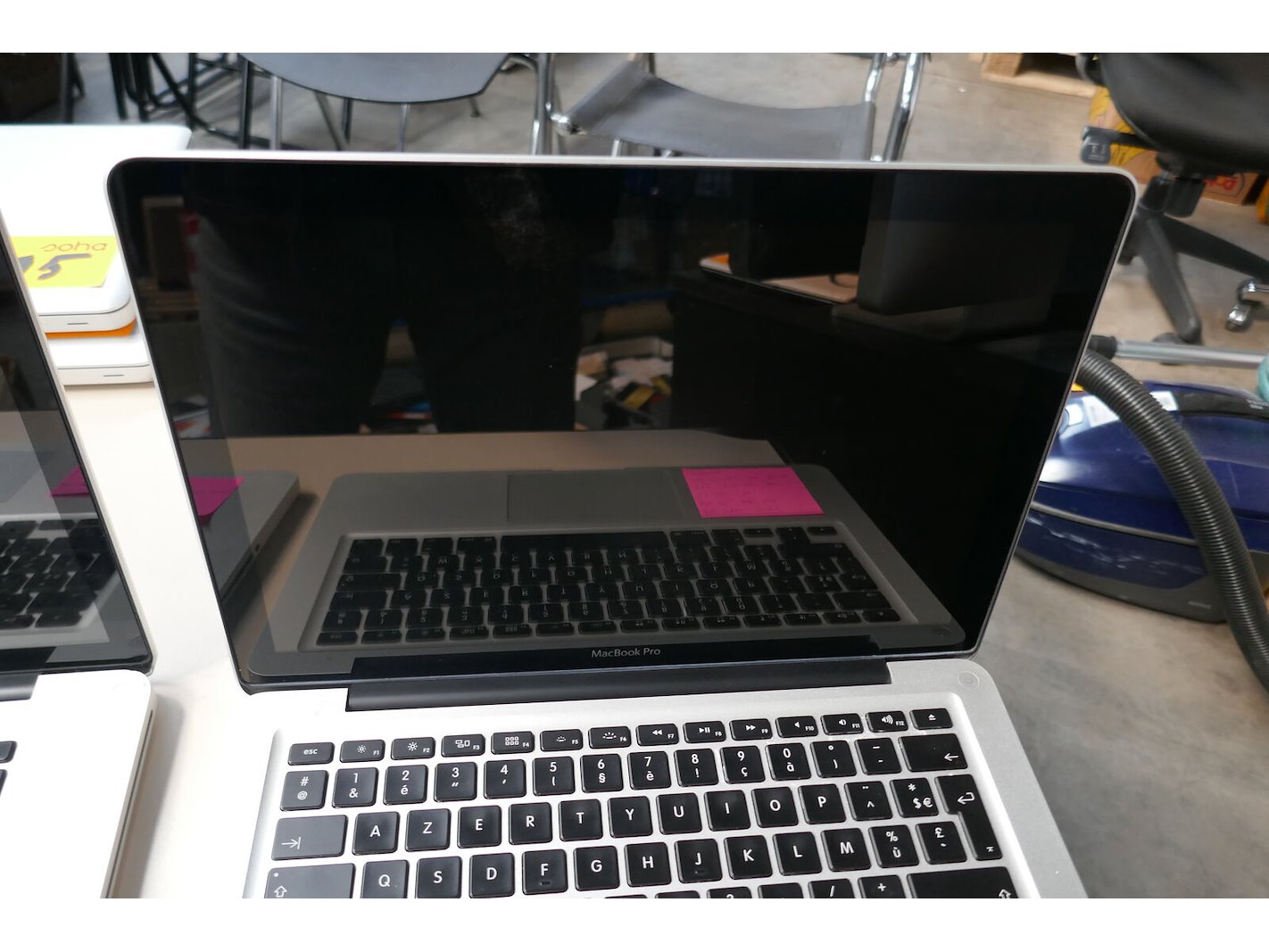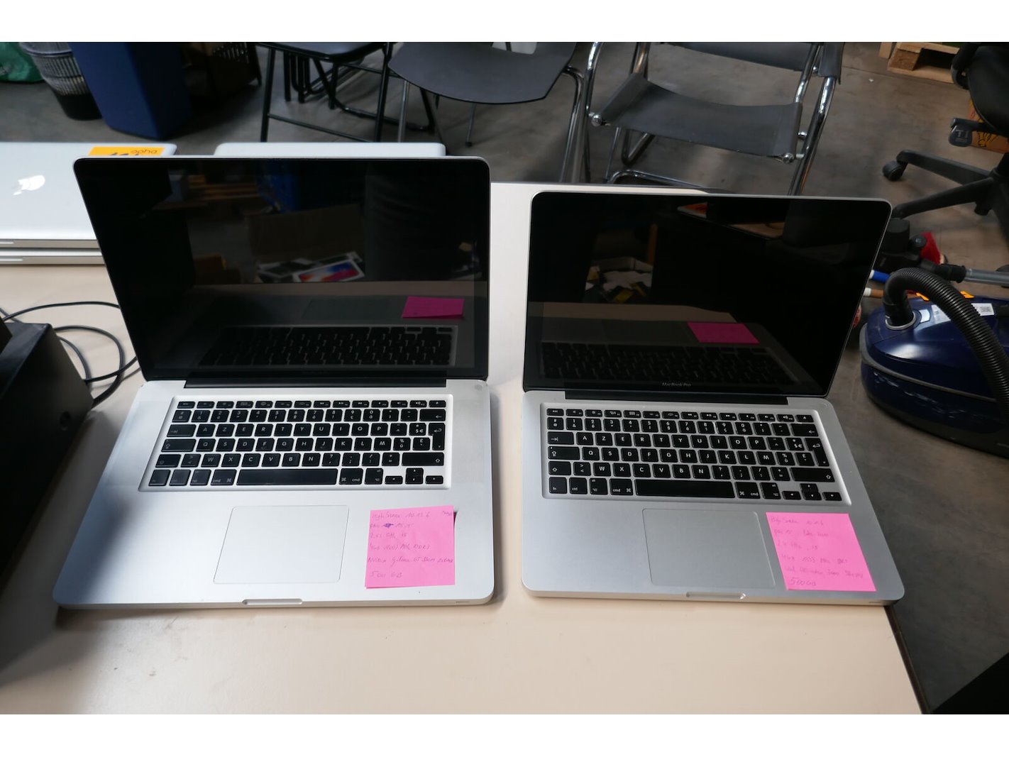 2 laptop's zonder laders <br /> *merk : APPLE MacBook pro <br /> Zie roze etiket op laptop voor info !!!