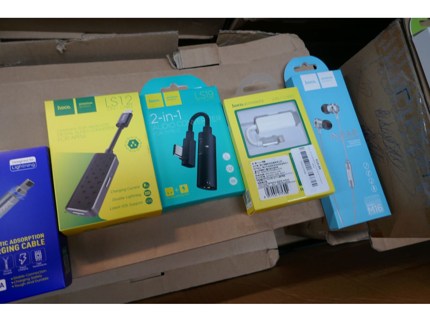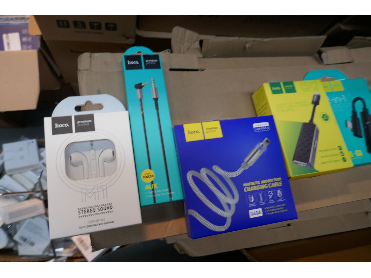 Stereo sound oordopjes - laadkabels - audio converters - enz…<br /> *merk : HOCO<br /> ( zie fotos voor aantal )