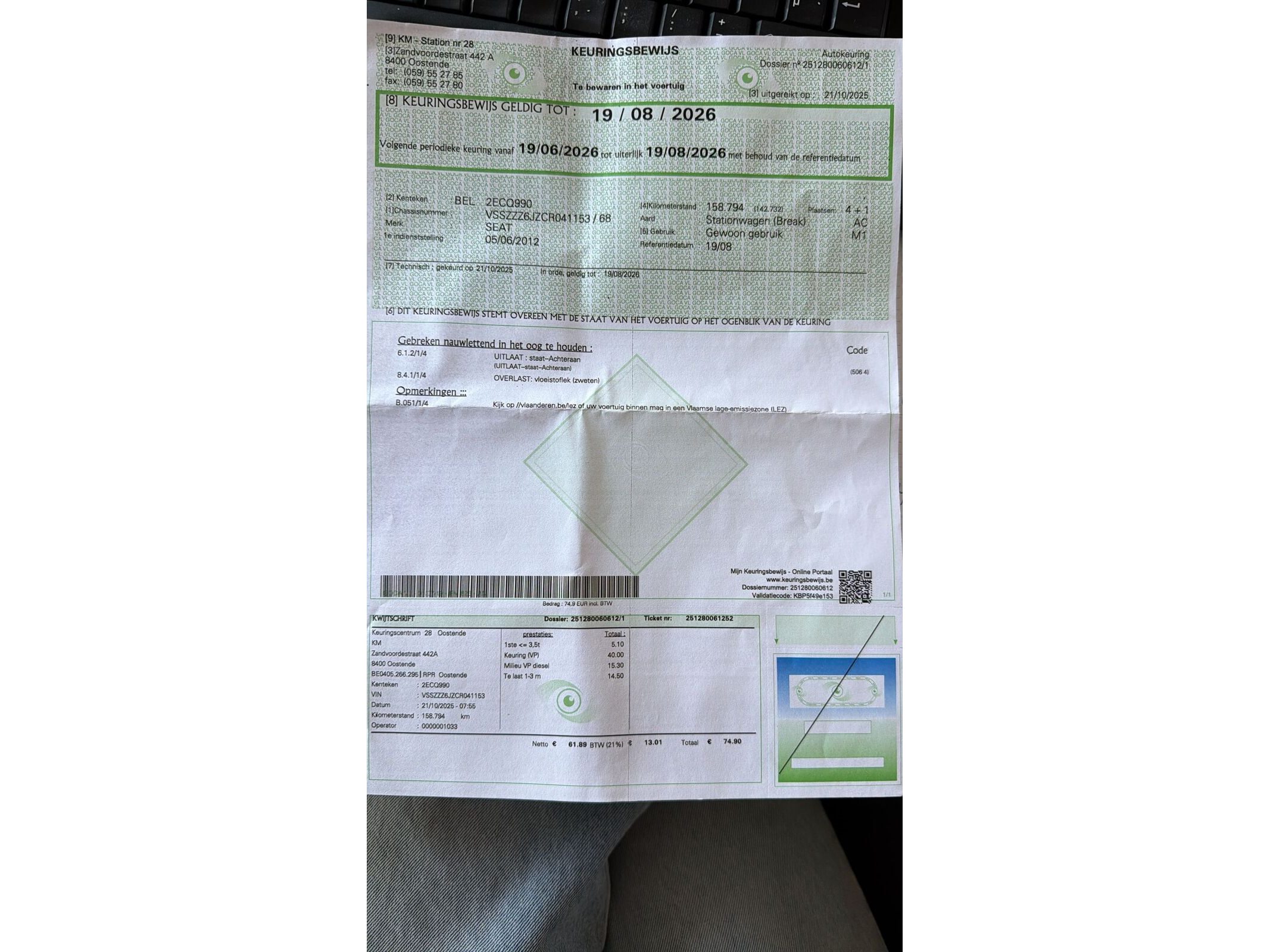 Seat Ibiza ST, eerste inschrijving: 05/06/2012, 55KW, 1199 CC, diesel, Euro 5, AC stationwagen, wit, VSSZZZ6JCR041153(01), 165042 km, carosserieschade, zie foto's