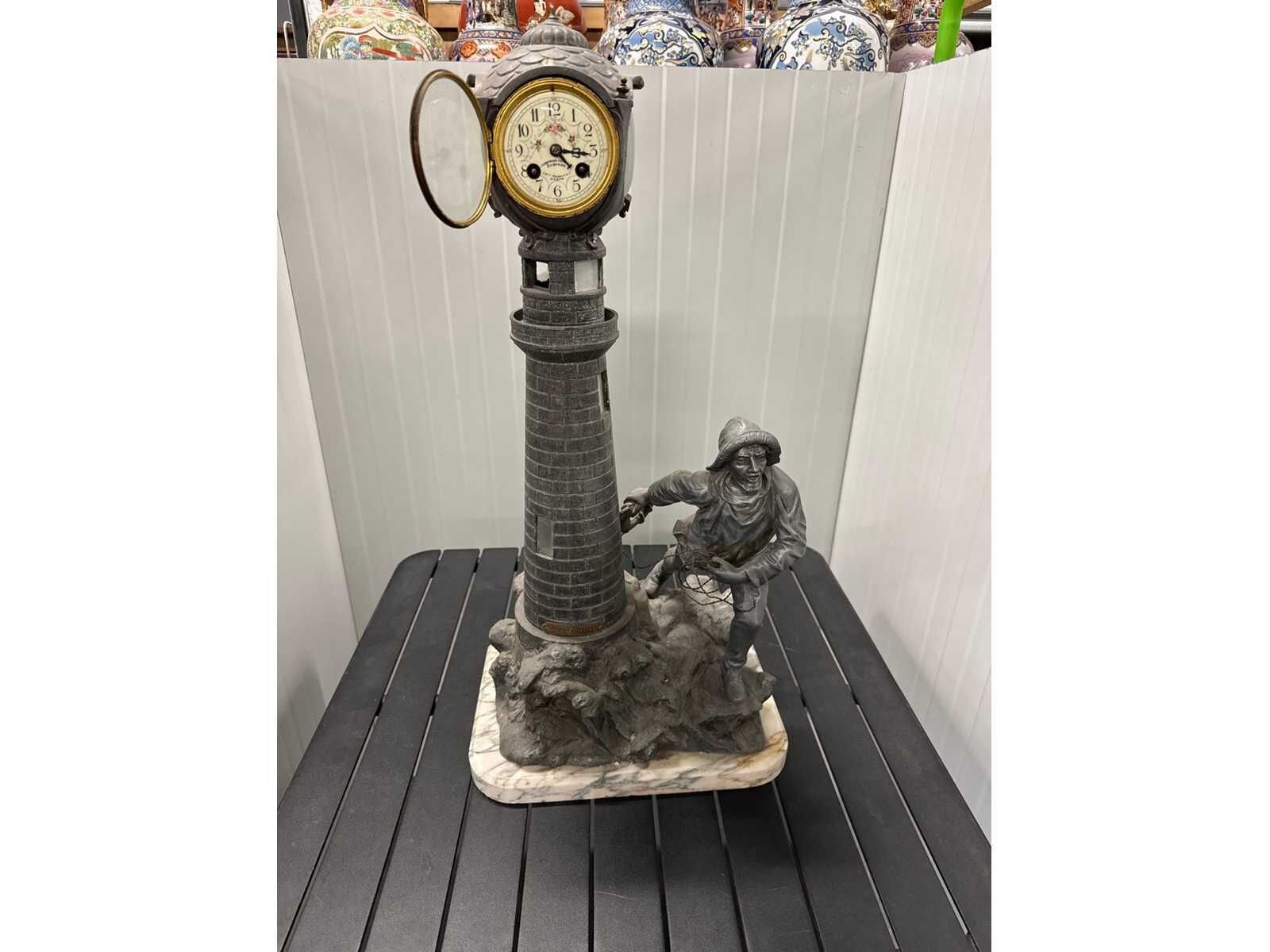 Antiek beeld met klok