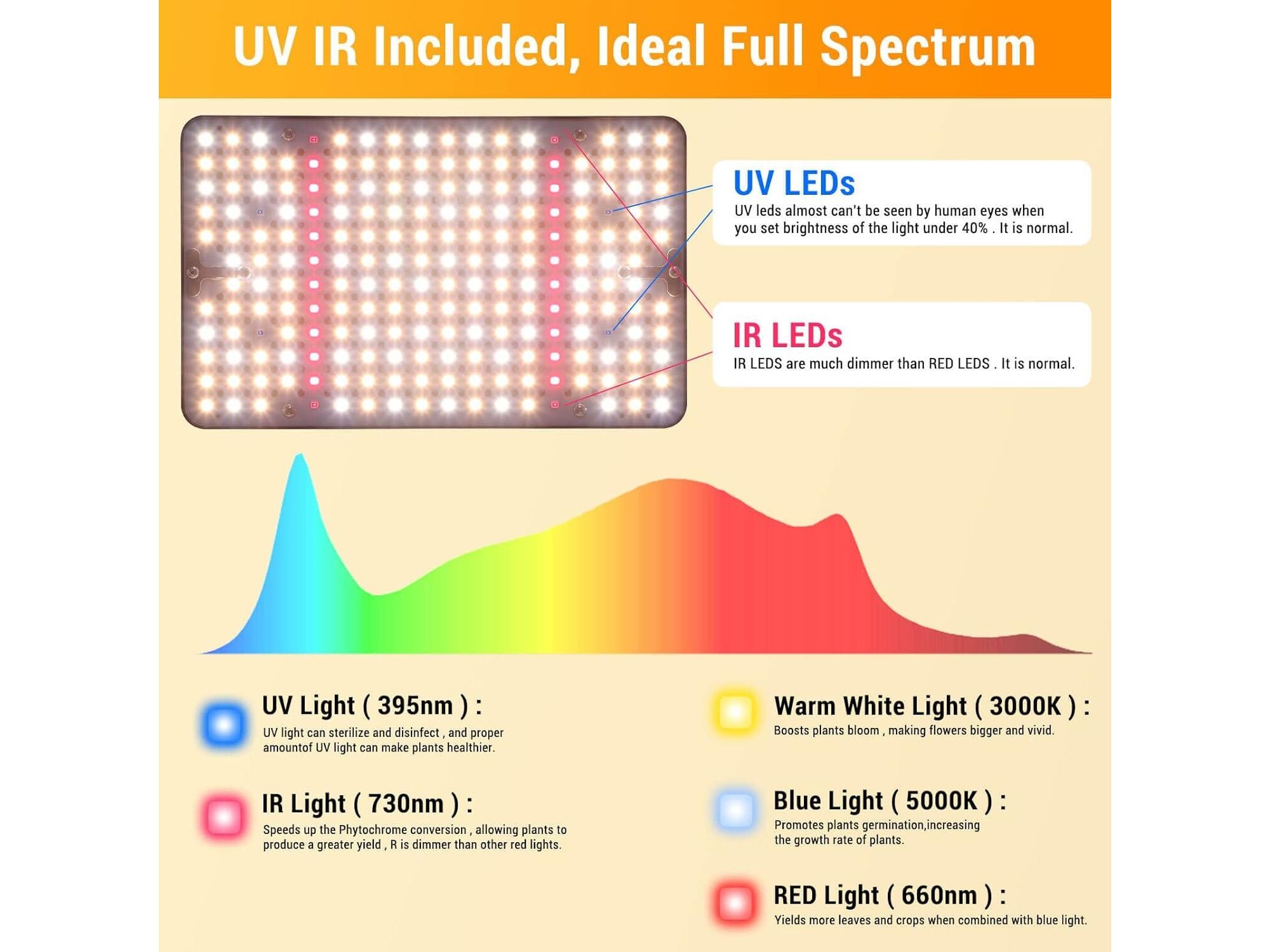 50x Ongeopend, FECiDA Tafel Grow Light LED 200W, UV-IR Full Spectrum Desk Plant Growing lamp, On/Off Switch, Dit full-spectrum grow light bevat 3000 K, 5000 K, 660 nm, uv-IR-leds. 3000 K en 5000 K diodes bieden meer rood en blauw licht. [B0BLCRXY54