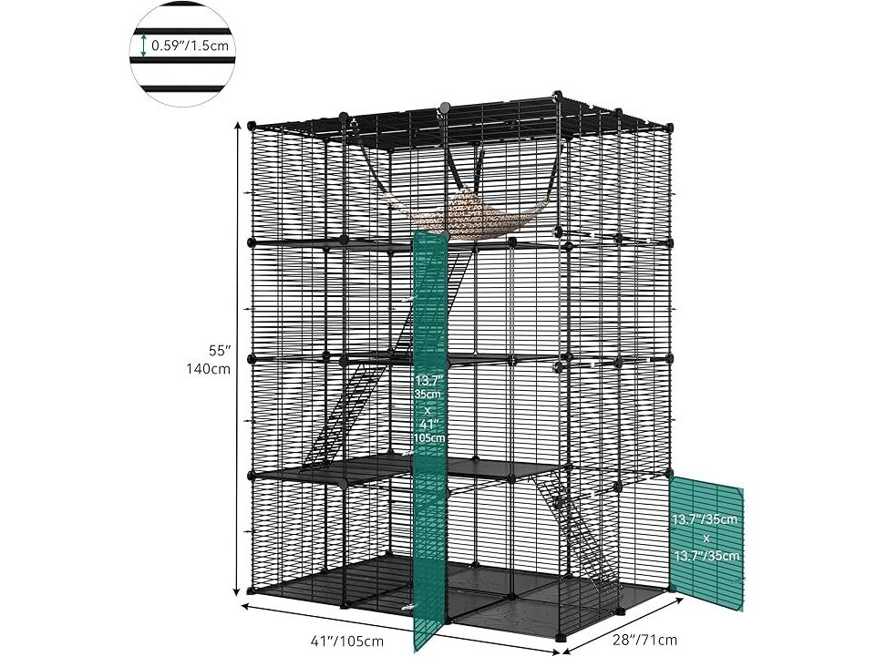 25x Ongeopend, YITAHOME Grote dierenkooi voor binnen, 4 niveaus, metaaldraad met 3 ladders, Catio met hangmat, dierenkooi voor 1 tot 3 katten, konijn, zwart, 107 x 72 x 142 cm B0CL9X4M6H