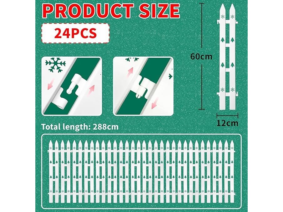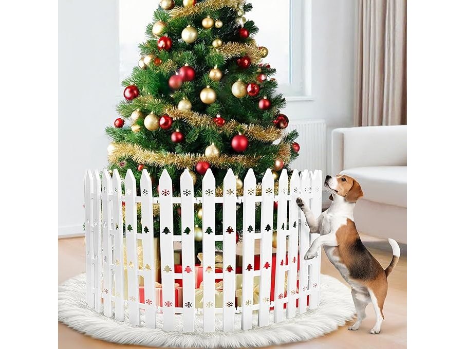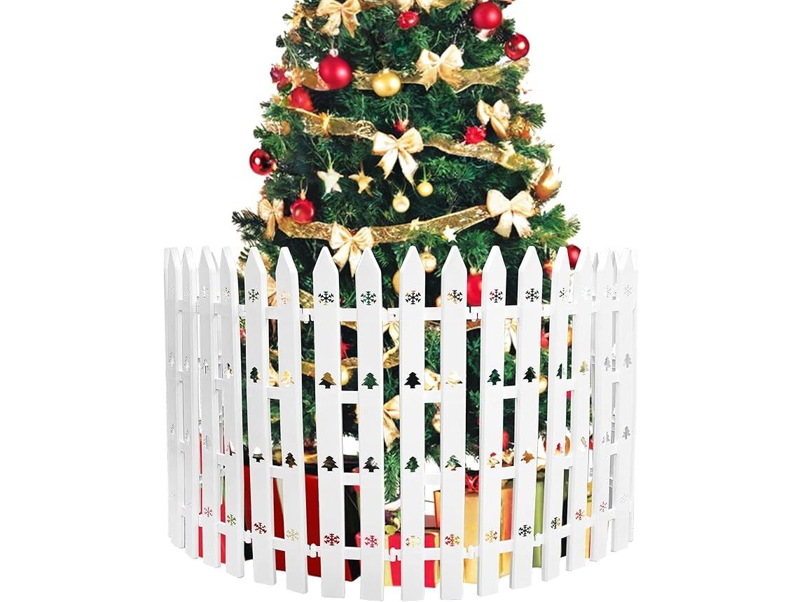 44x Ongeopende Set van 24 decoratieve kerstboomhekken, 60 cm, extra hoog, wit met sneeuwvlokkendesign, voor boombescherming, kinderen, huisdieren, kerstomheining decoratie B0FC67CN8H