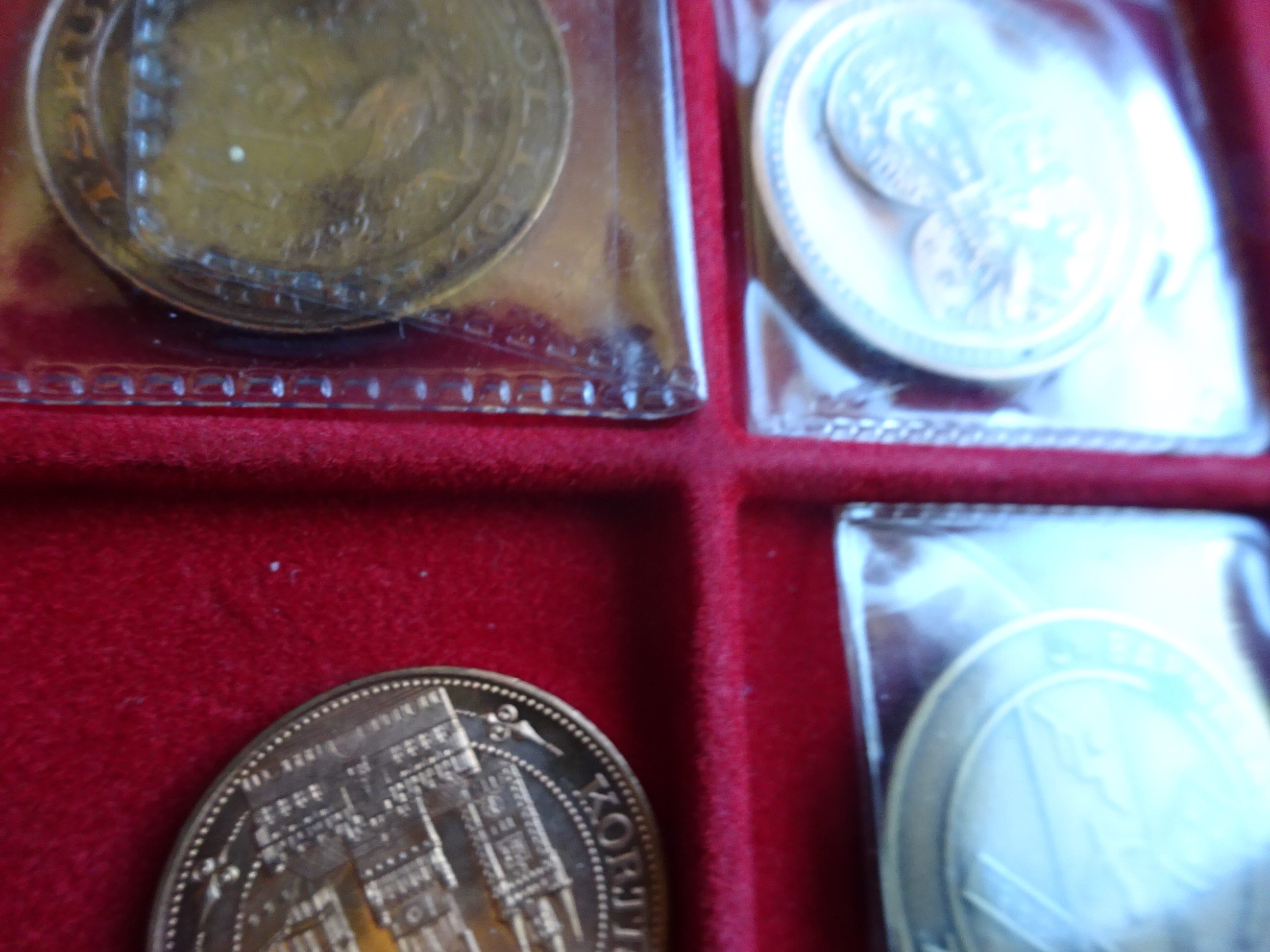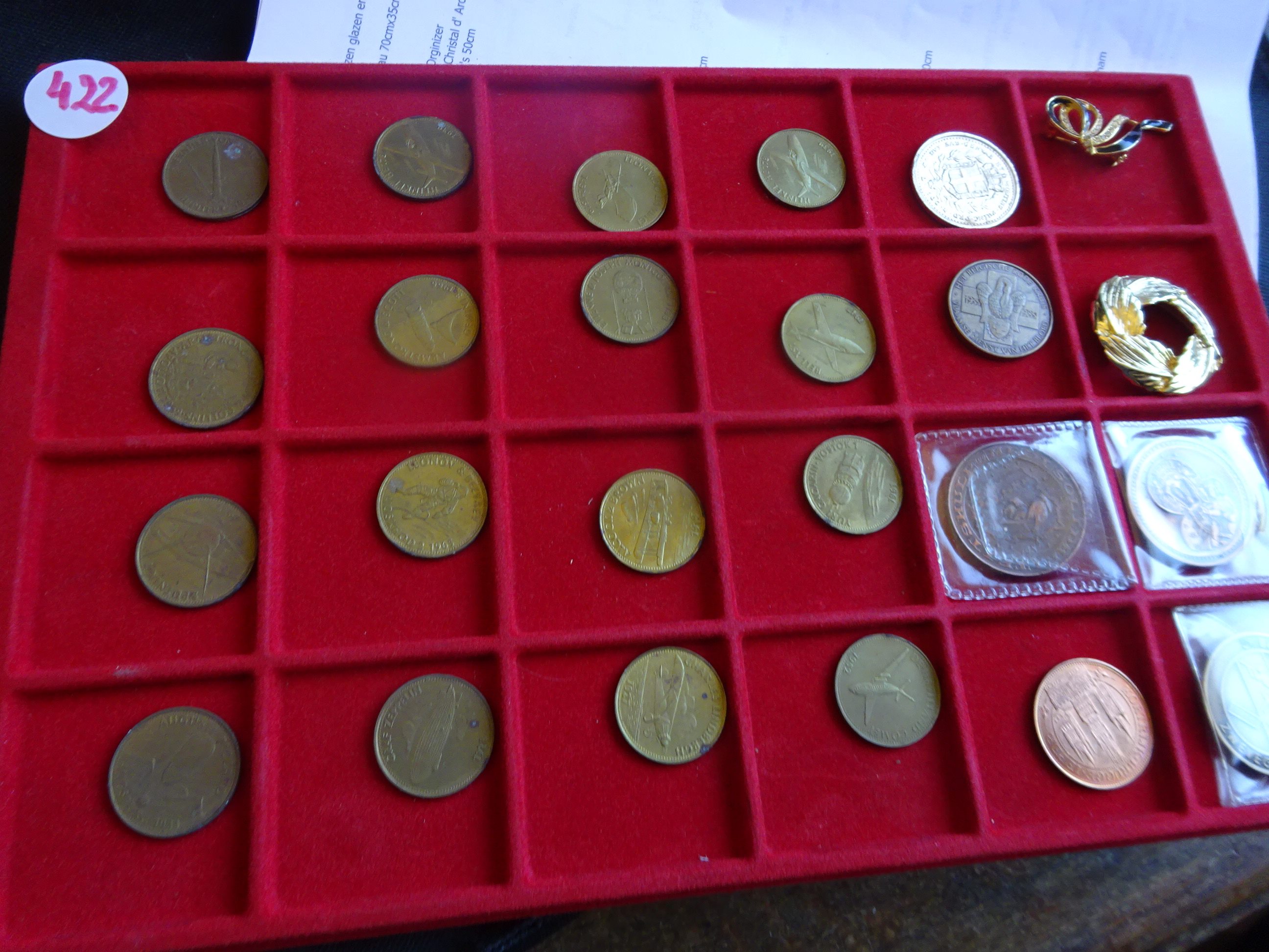 Tray met22 penningen en 2 sieraden