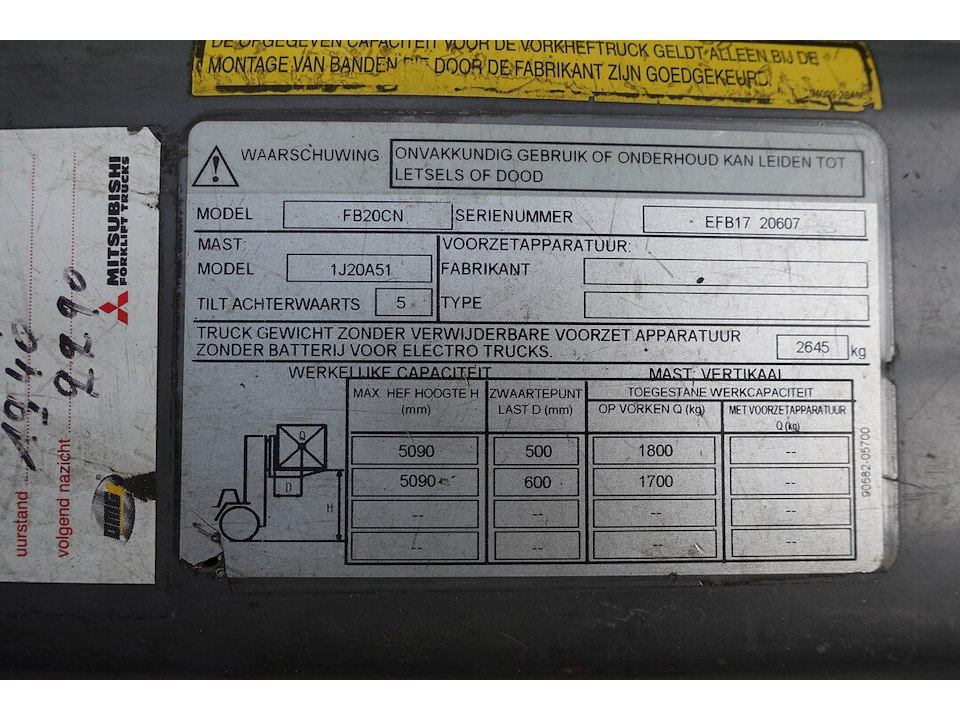 Type: FB20CN<br /> max.: 5090mm<br /> uren: 4115<br /> vv. lader ( rem na te zien) <br /> afhalen op het einde van de afhaaldag!!!<br /> locatie: