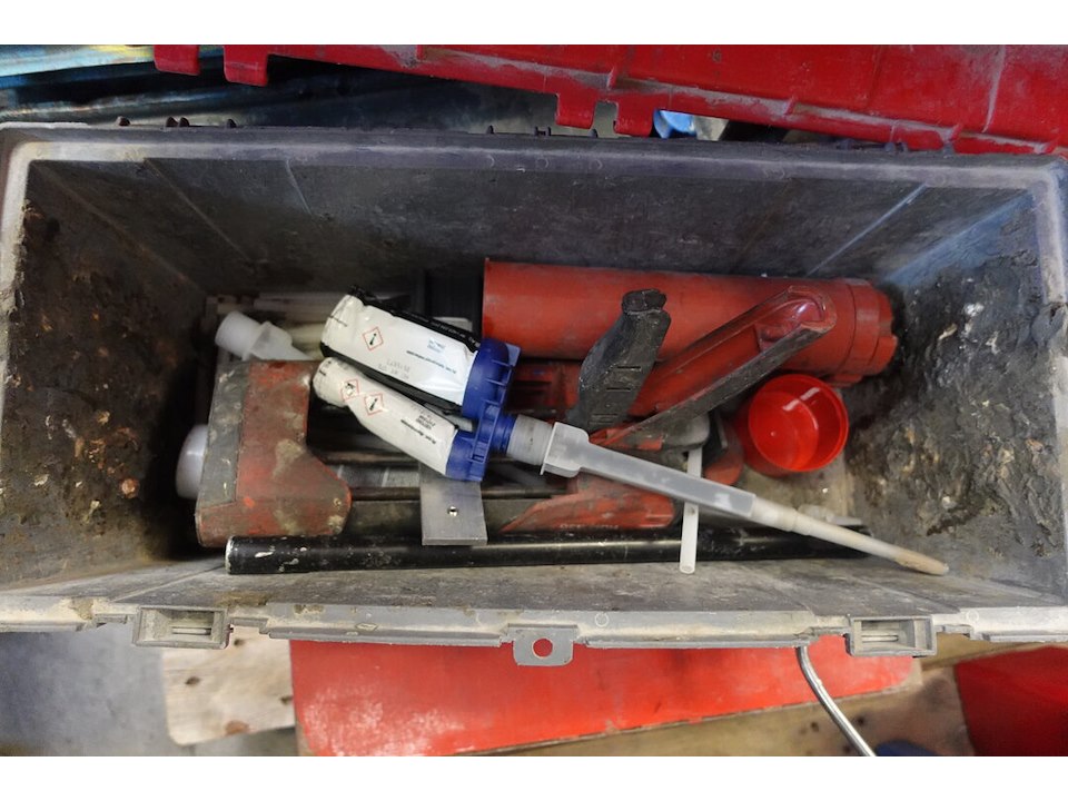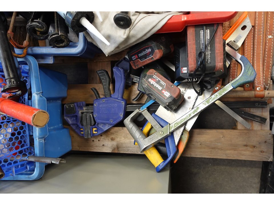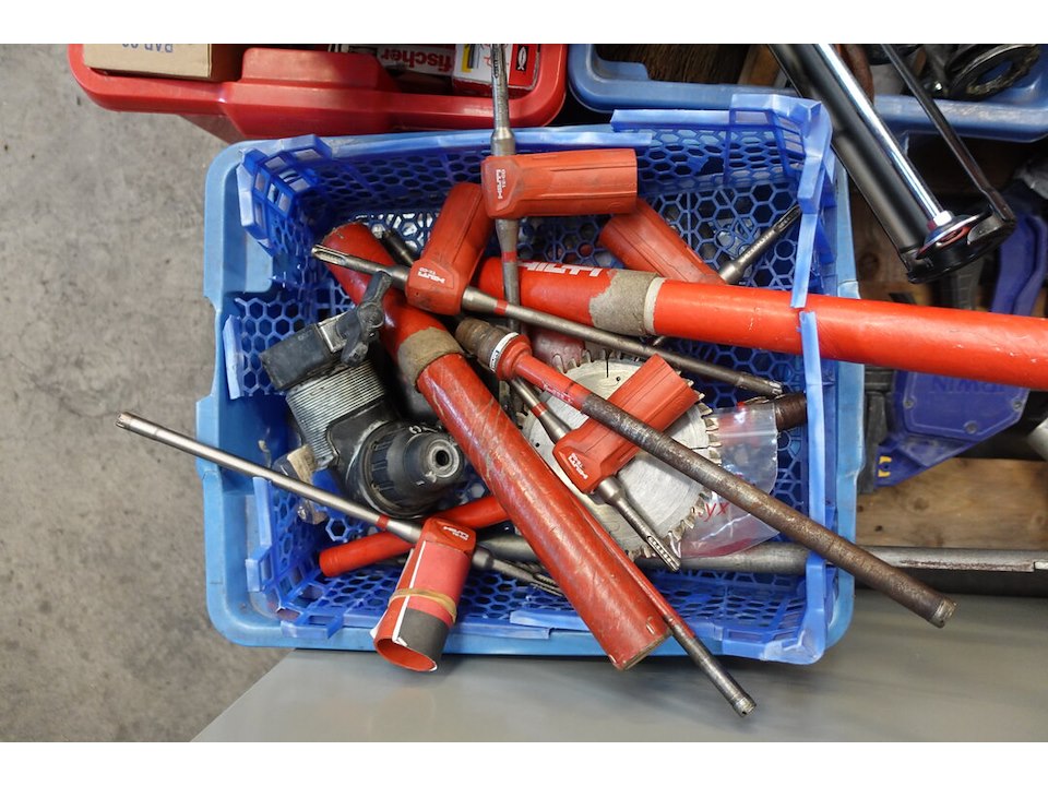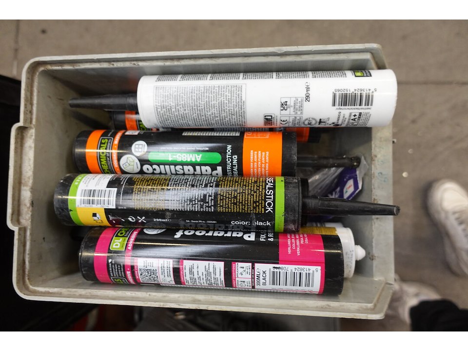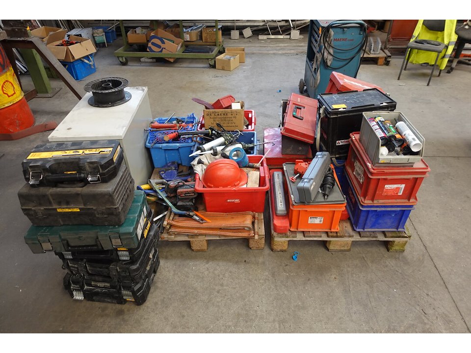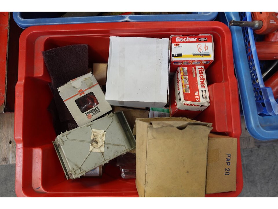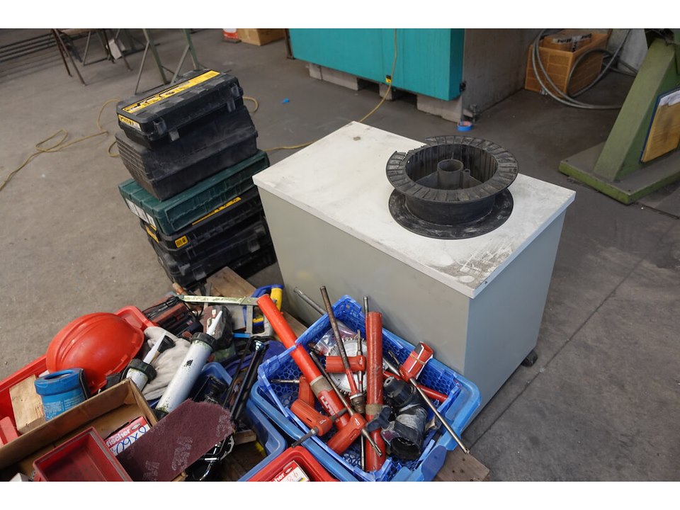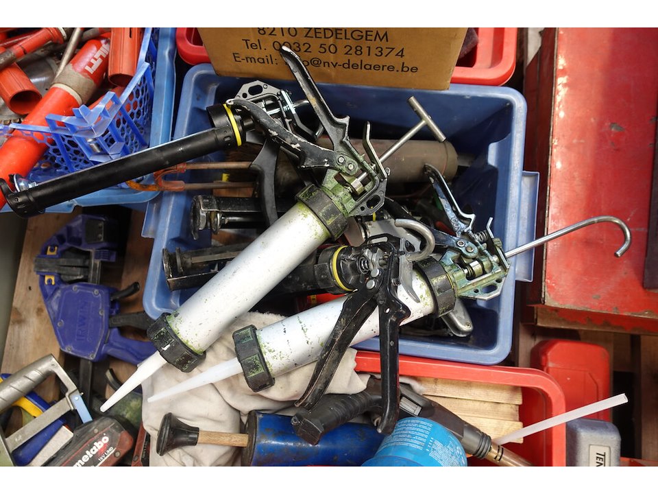 Oa. Handgereeschap, materiaalkoffers ( leeg ), silicone, ...<br /> locatie: Atelier staal