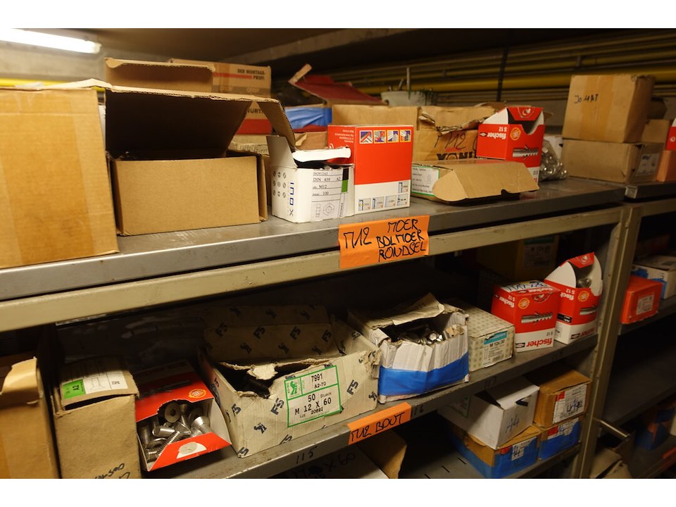 Diverse rekken, ijzerwaren , vijzen , bouten , moeren , afstandshouders... ( Alles moet mee ! ) <br /> locatie: Magazijn