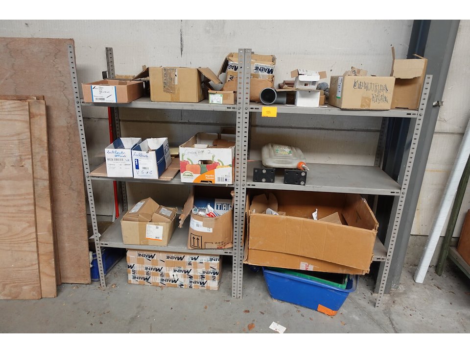 3x diverse rekken met inhoud, Shuco diversen , verrijdbaar kar met 4x rol, diverse ijzerwaren...<br /> locatie: Garage
