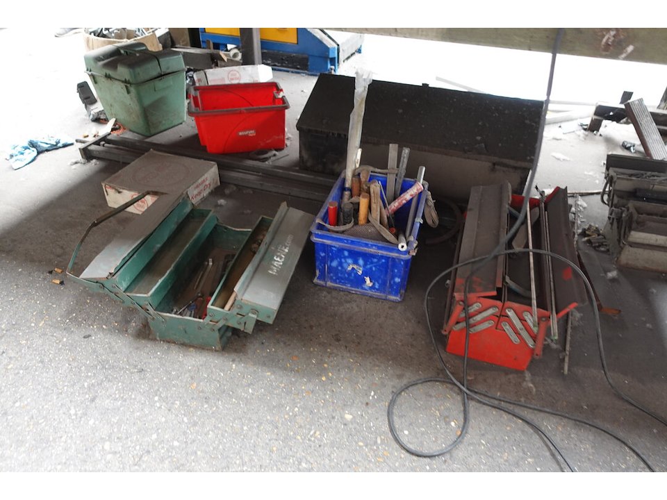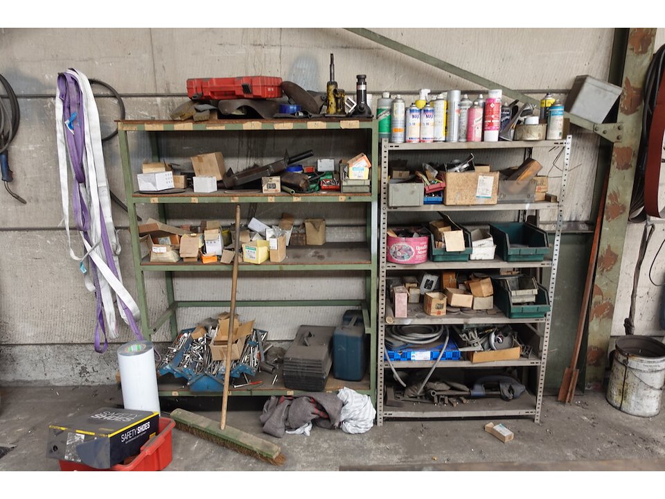 Grote partij ijzer, kabels , 3x rek met inhoud en producten, diverse schragen, lastafel, 3x kar, bureau met inhoud...( Alles moet mee ! ) <br /> locatie: Atelier staal