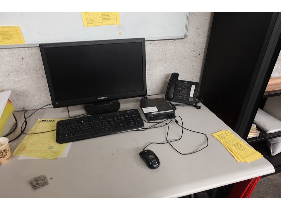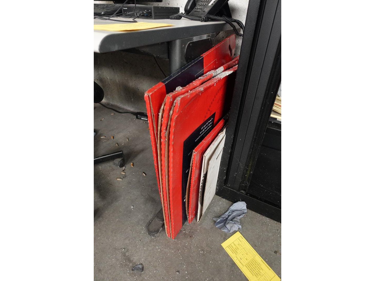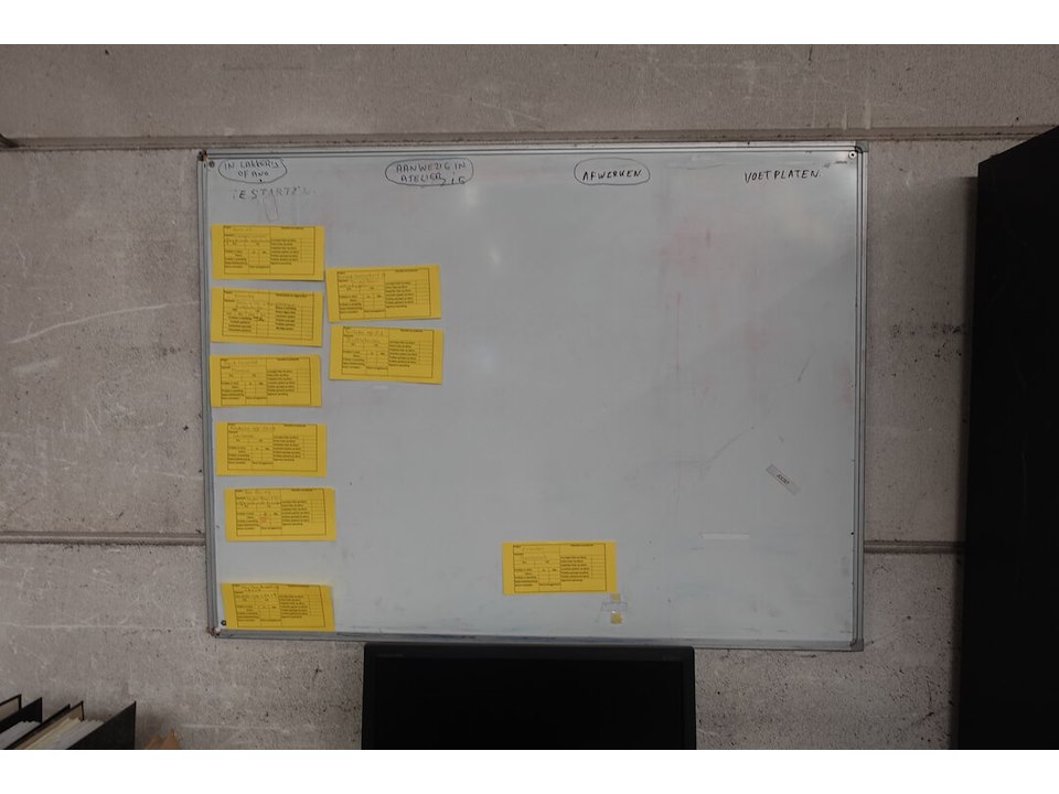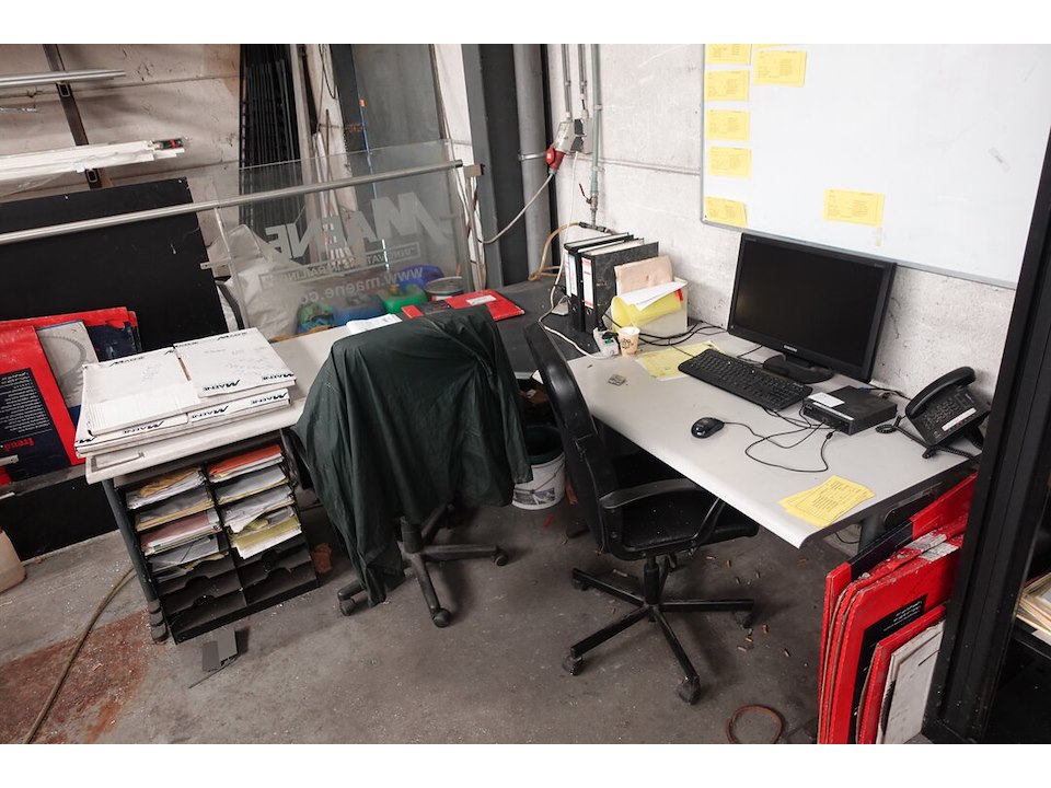 Bureau, 2x stoel en kast met inhoud <br /> locatie: Atelier aluminium
