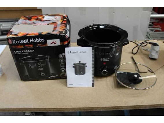 Ongebruikt, getest en werkend, volledig, ok, Russell Hobbs Chalkboard Slowcooker, 4 Porties (3,5L), Mat Zwart, "Schoolbord" Oppervlak, Incl. Krijt, 200 Watt, 24180-56, B074H7K38T