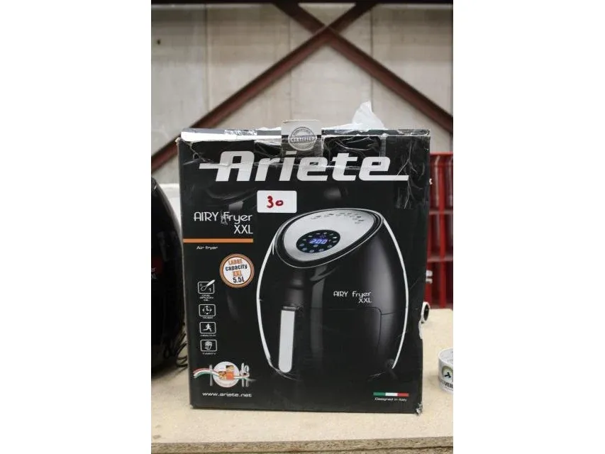 Gebruikssporen, getest en werkend, volledig, ok, Ariete Airy Fryer XXL 4618, heteluchtfriteuse van 5,5 liter, timer voor 60 minuten, LCD en touchscreen met 7 kookmodi, maximale temperatuur 200° C, capaciteit 2,5 kg, 1800 W, zwart [Energieklasse A], B085WMRLJJ