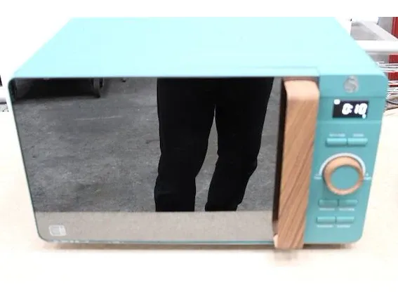 Gebruikssporen, getest en werkend, volledig, ok, Swan Nordic Digitale magnetron, 20 l, 6 standen, 800 W, vermogen, timer 30 min, eenvoudige reiniging, ontdooimodus, modern design, handvat van hout, mat groen, B08CKXK9SW