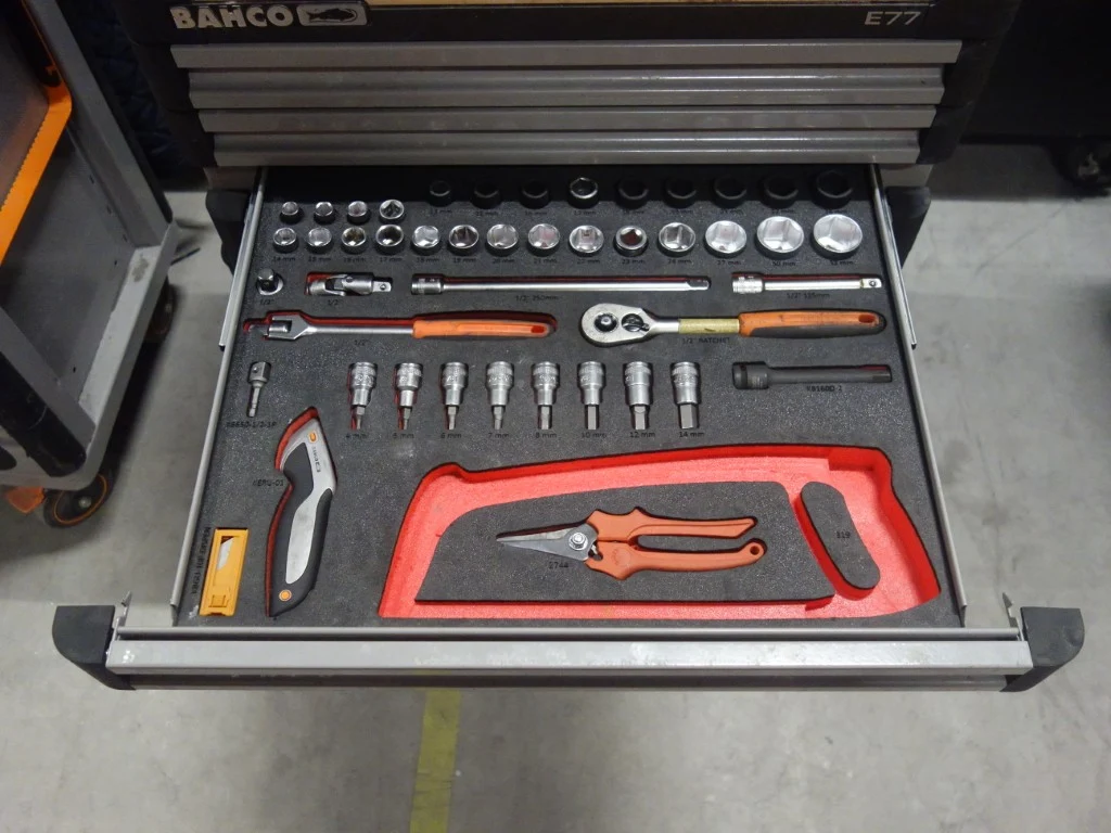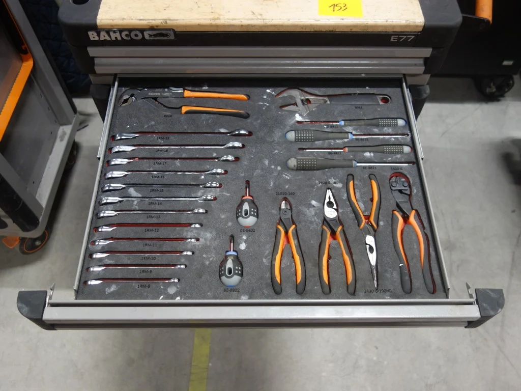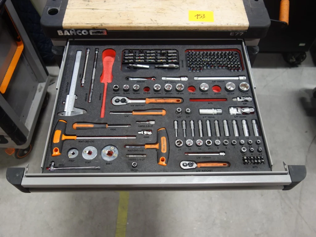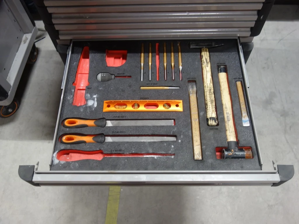 Type: E77, gevuld met divers handgereedschap, vv. bankschroef en 9 lades<br /> locatie: Zone 3