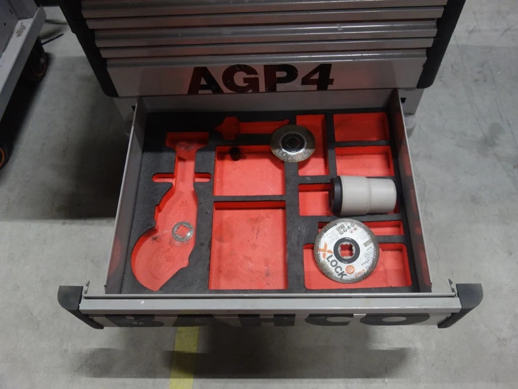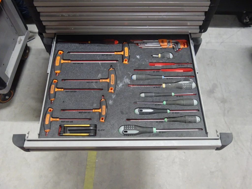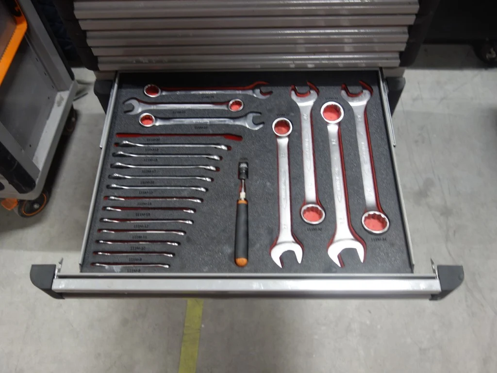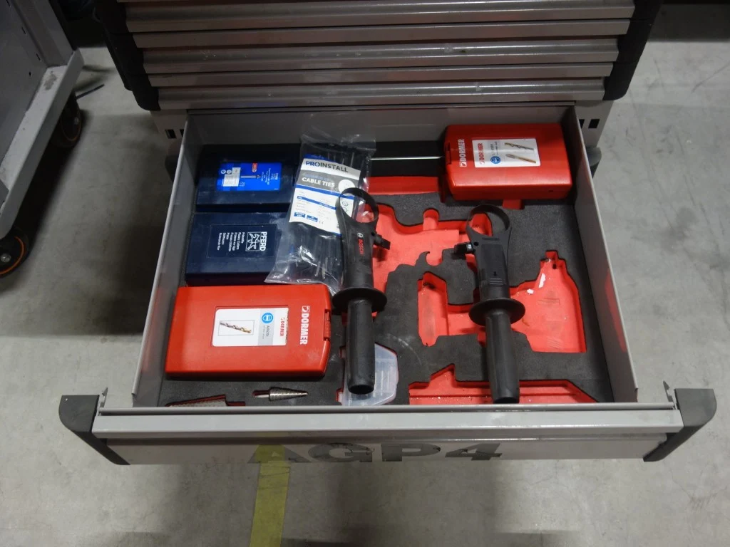 Type: E77, gevuld met divers handgereedschap, vv. bankschroef en 9 lades<br /> locatie: Zone 3