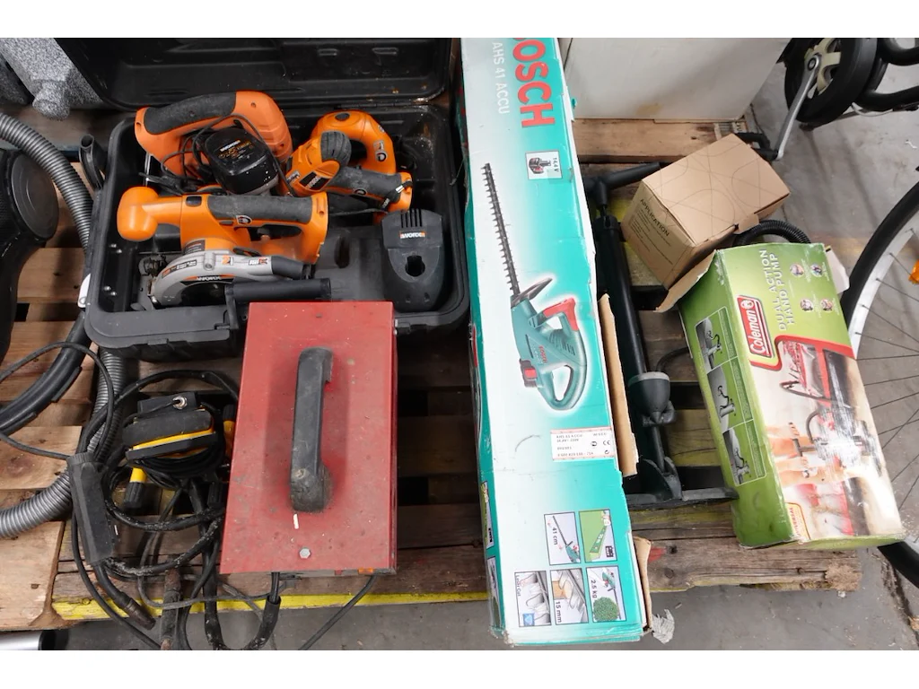 Oa: voetpomp, heggenschaar, verlichting,werktrolly,...<br /> locatie: A15