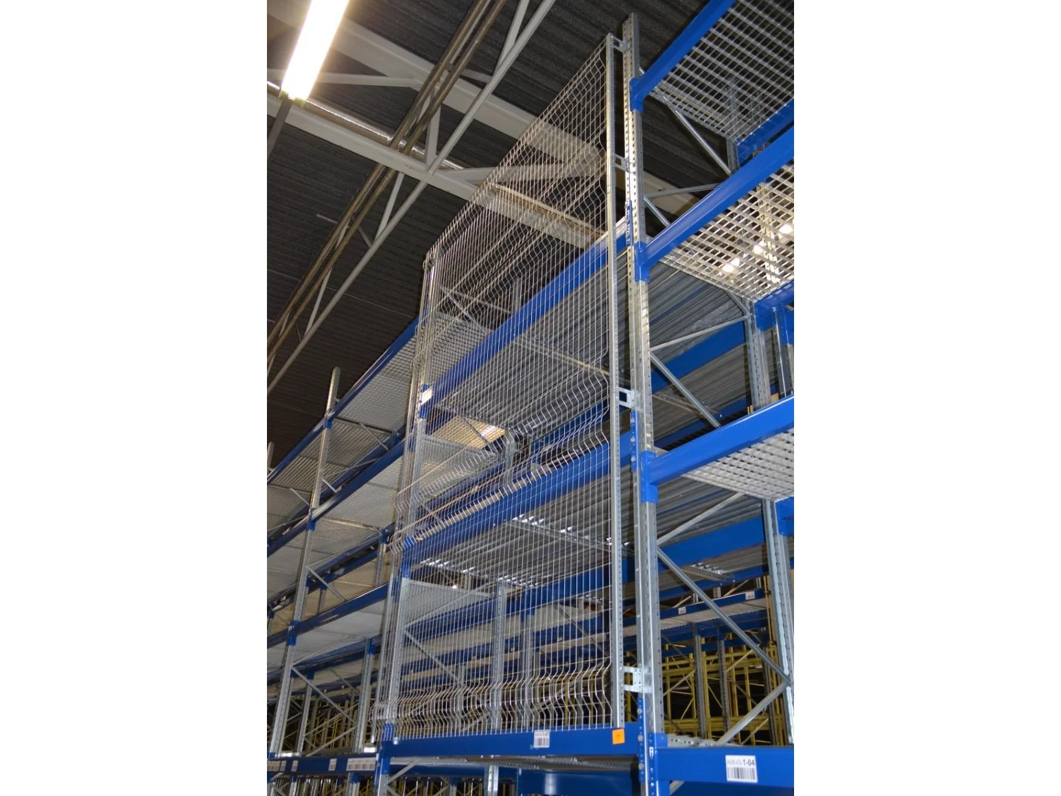 Hoogte=6000mm. 13 staanders. 106 liggers lengte=2700mm. Voorzien van roosters en aanrijbeveiliging.