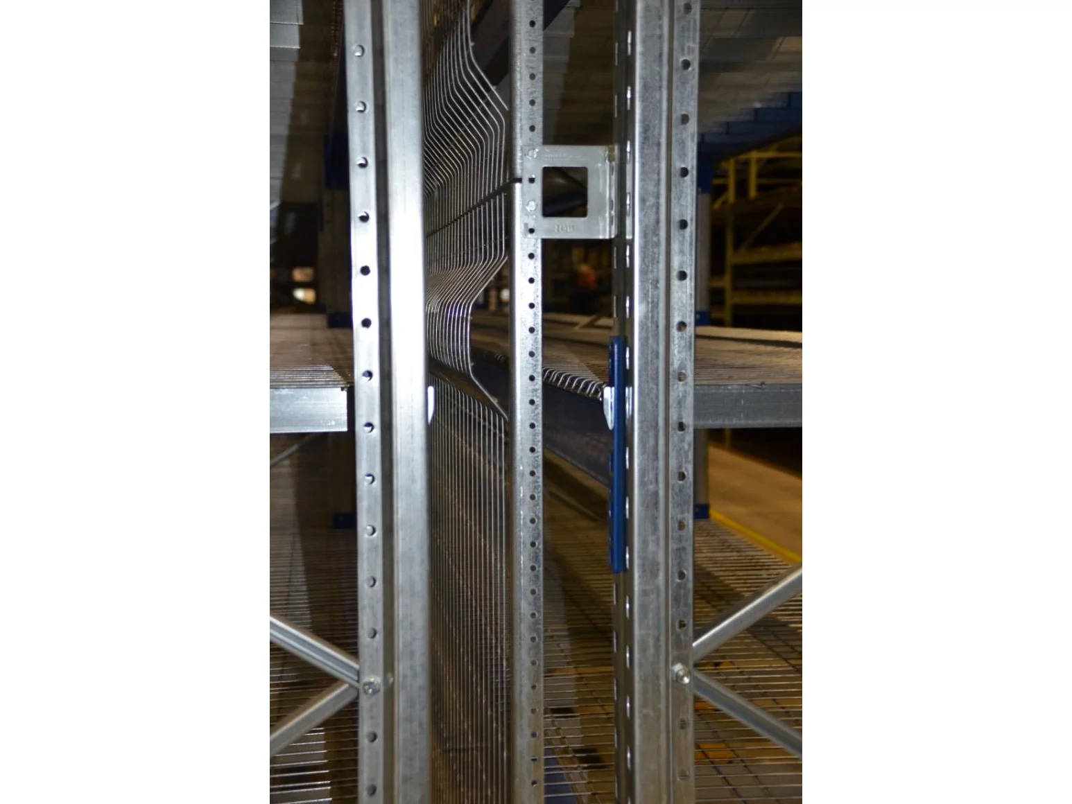 Hoogte= 5000mm 9 staanders. 112 liggers lengte=2700mm. + valbeveiliging. Voorzien van roosters en aanrijbeveiliging.
