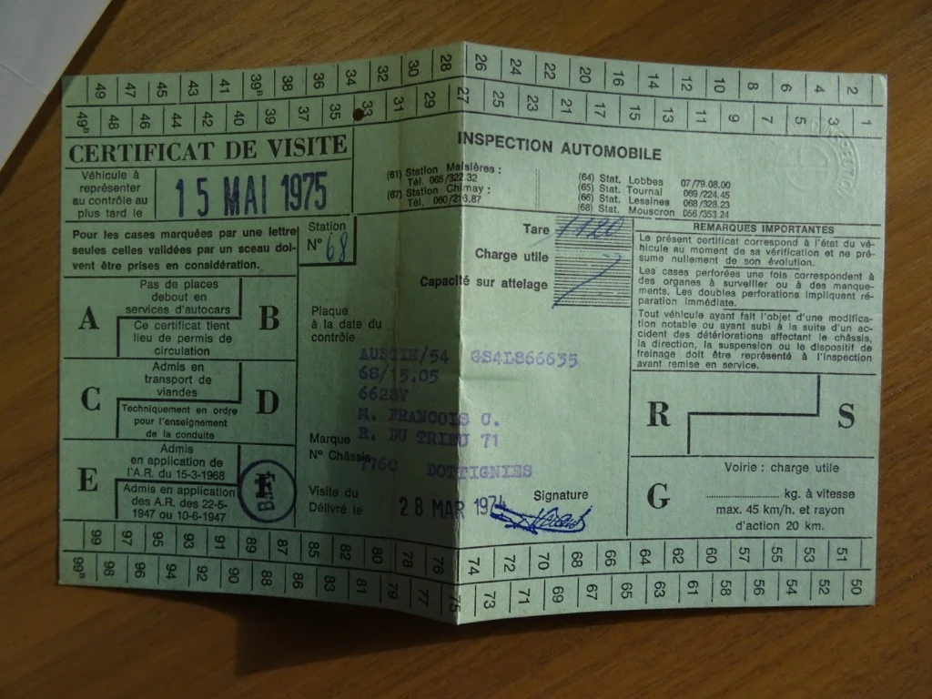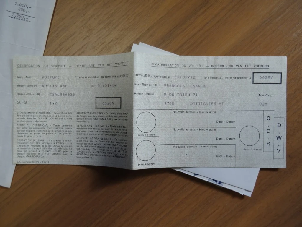 Type: Austin A40, 1ste inschrijving 07/1954, chassis nr.: GS4L866635, 1,2 cylinder, 71331 km, inschrijvingsbewijs aanwezig