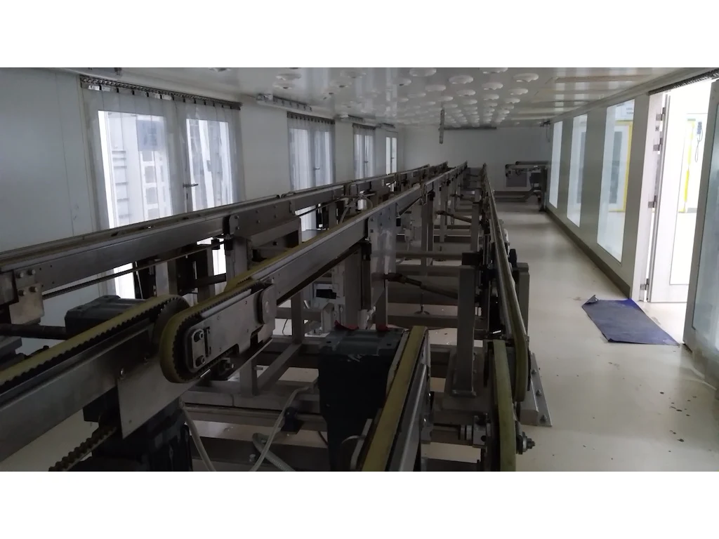 This lot contains the following items:<br /> "CURVED GLASS WASHER - BENTELER 30-3344 YEAR: 2019<br /> LENGTH: 12000, WASHING SECTION: 5000, DRYING SECTION: 7000<br /> GLASS WIDTH: 2500"<br /> CURVED GLASS TRANSPORT BELT CONVEYOR 2500<br /> CURVED GLASS TRANSPORT BELT CONVEYOR 2500<br /> CURVED GLASS TRANSPORT BELT CONVEYOR 2500<br /> CURVED GLASS TRANSPORT BELT CONVEYOR 2500<br /> CURVED GLASS ROTATING BELT CONVEYOR 2500<br /> CURVED GLASS TRANSPORT BELT CONVEYOR 2500<br /> CURVED GLASS TRANSPORT BELT CONVEYOR 2500<br /> <a href="https://drive.google.com/drive/folders/1xU8xQNc1_XToU8SGlvSeiEH7hGaTgByX" target="_blank"><b>Click here to view all photos</b></a>