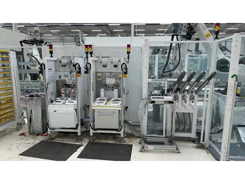 This lot contains the following items:<br /> RACK ROTATING PLATFORM 2600X1850<br /> KUKA ROBOT KR 150 R3100-2/FLR<br /> GA LIFTING CHECKING FIXTURE - TECHNOSENSE<br /> CENTERING BELT CONVEYOR 3000 AND GLASS LIFTING COLUMN<br /> REJECTING BELT CONVEYOR 1700 4PCS<br /> FRACTAL CAMERA SYSTEM + BLACK CABIN + GLASS LIFTING COLUMN<br /> TRANSPORT BELT CONVEYOR WITH POP UP TABLE 3000 2PCS<br /> KUKA ROBOT KR 50 R2500/SEL<br /> TRANSPORT BELT CONVEYOR 3000<br /> GLASS FLIP OVER + INSPECTION STATION<br /> TRANSPORT BELT CONVEYOR WITH POP UP TABLE 3000<br /> TRANSPORT BELT CONVEYOR 3000<br /> KUKA ROBOT KR150 R3100-2/FLR + TOOL CHANGE STATION + PART FEEDER<br /> KUKA ROBOT KR 340 R3330/FLR<br /> KUKA ROBOT KR 600 R2830/FLR<br /> TOOLING CHAIN CONVEYOR 9 STATIONS, 12000<br /> ASSEMBLY TABLE<br /> KUKA ROBOT KR 120 R3100-2/FLR<br /> KUKA ROBOT KR 240 R3330/FLR<br /> POLYURETHANE APPLICATION - WAGNER REINHARDT-TECHNIK - ON PLATFORM<br /> POLYURETHANE APPLICATION - WAGNER REINHARDT-TECHNIK - ON THE FLOOR<br /> ANTENNA SHUTTLE 10PCS POP UP STATIONS<br /> CHEMICAL STATIONS 6PCS - ON PLATFORM<br /> KUKA ROBOT KR 120 R3100-2/FLR<br /> KUKA ROBOT KR 120 R3100-2/FLR<br /> ANTENNA PEG CONVEYOR<br /> KUKA ROBOT KR 150 R3100-2/FLR<br /> ROTATING PLATFORM 2400X1250<br /> KUKA ROBOT KR 120 R3100-2/FLR<br /> METAL FRAME SHUTTLE 10 STATIONS 20000<br /> KUKA ROBOT KR 120 R3100-2/FLR<br /> GLASS SHUTTLE 10 STATIONS 22000<br /> GLASS LIFTING TOWER<br /> MANUAL UNLOADING WITH POPUP TABLE<br /> KUKA ROBOT KR 120 R3900 ULTRA K/FLR<br /> KUKA ROBOT KR 120 R3100-2/FLR<br /> KUKA ROBOT KR 120 R3100-2/FLR<br /> KUKA ROBOT KR 150 R2700-2/FLR<br /> GLASS LOADING STATION<br /> KUKA ROBOT KR 150 R3100-2/FLR<br /> TRANSPORT BELT CONVEYOR 1500<br /> TRANSPORT BELT CONVEYOR 3000<br /> SHUTTLE 3 STATIONS 9000<br /> TRANSPORT BELT CONVEYOR 3200<br /> TRANSPORT BELT CONVEYOR 3200<br /> GLASS VERTICAL CENTERING<br /> ROTATING PLATFORM 2400X1250<br /> KUKA ROBOT KR 150 R3100-2/FLR<br /> KUKA ROBOT KR 120 R3100-2/FLR<br /> CHEMICAL STATION 2PCS<br /> TRANSPORT BELT CONVEYOR 3000<br /> TRANSPORT BELT CONVEYOR 3000 + HEATERS<br /> TRANSPORT BELT CONVEYOR 3000 + CENTERING<br /> KUKA ROBOT KR 240 R3330/FLR<br /> KRAUSS-MAFFEI CHEMICAL FEEDING STATION<br /> KRAUSS-MAFFEI EFT-22-13-500 ENCAPSULATION YEAR: 2020<br /> <a href="https://drive.google.com/drive/folders/1xU8xQNc1_XToU8SGlvSeiEH7hGaTgByX" target="_blank"><b>Click here to view all photos</b></a>