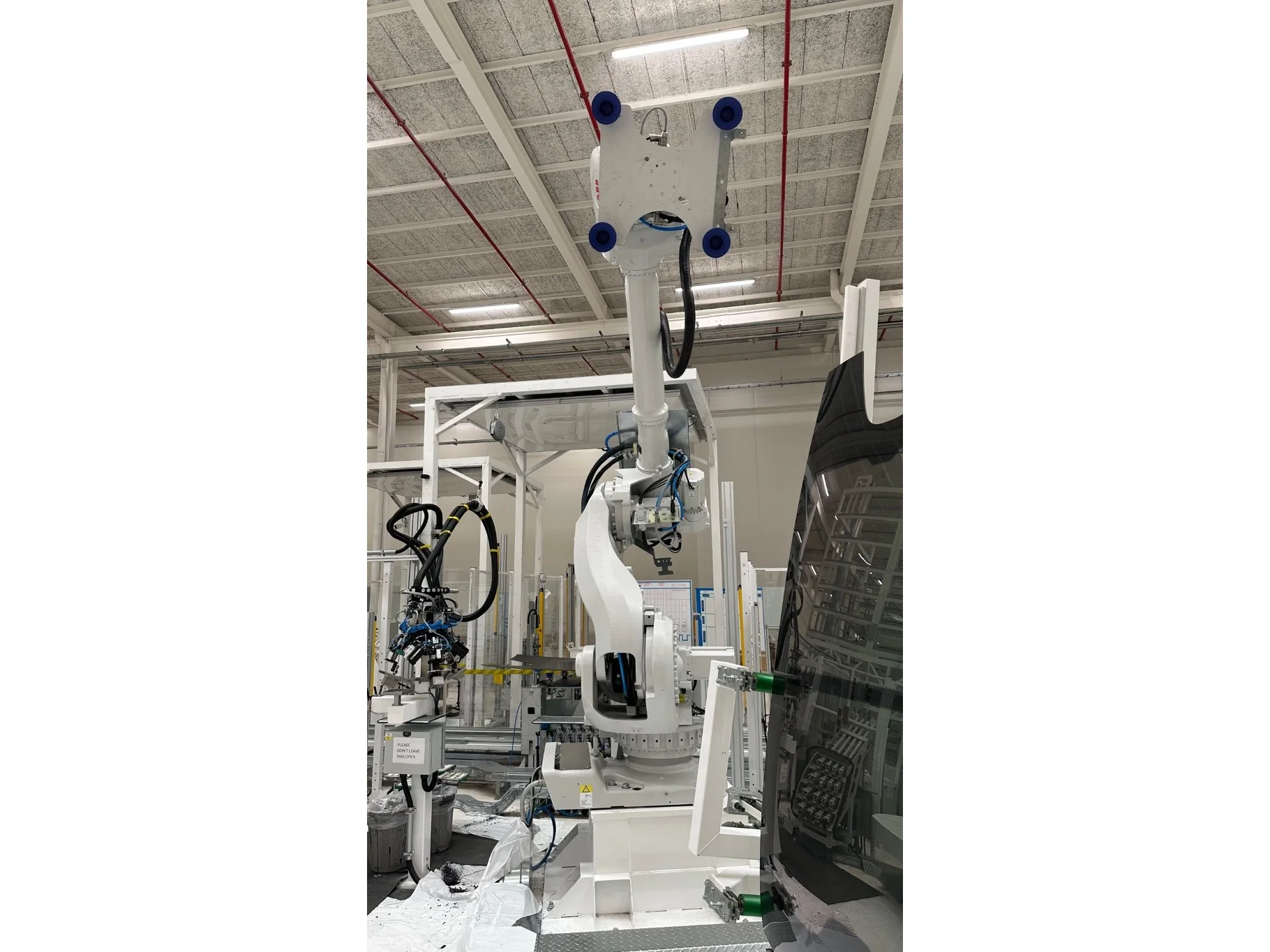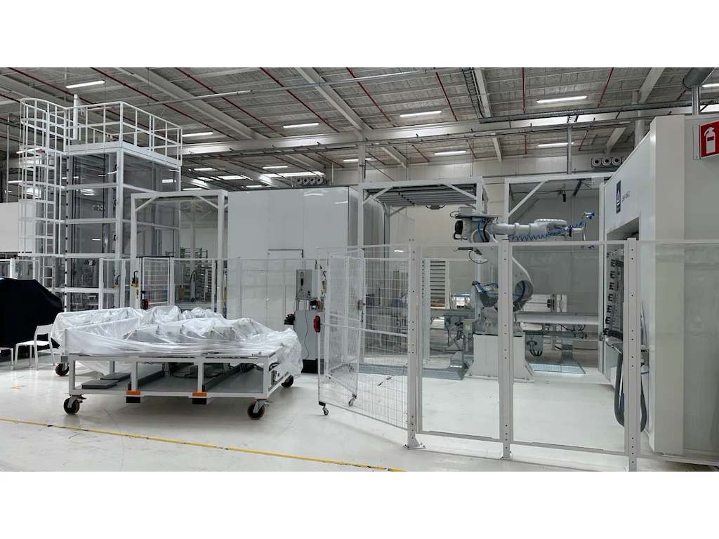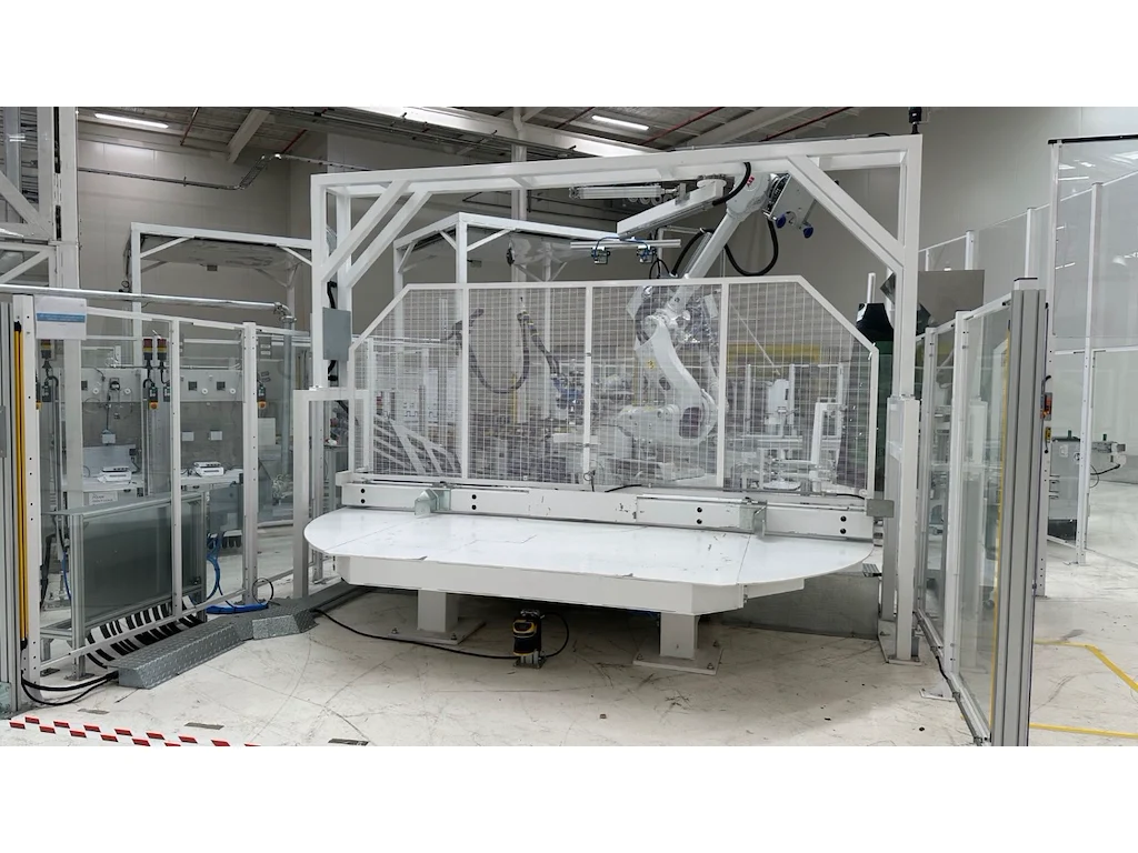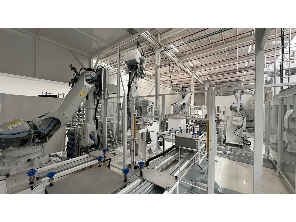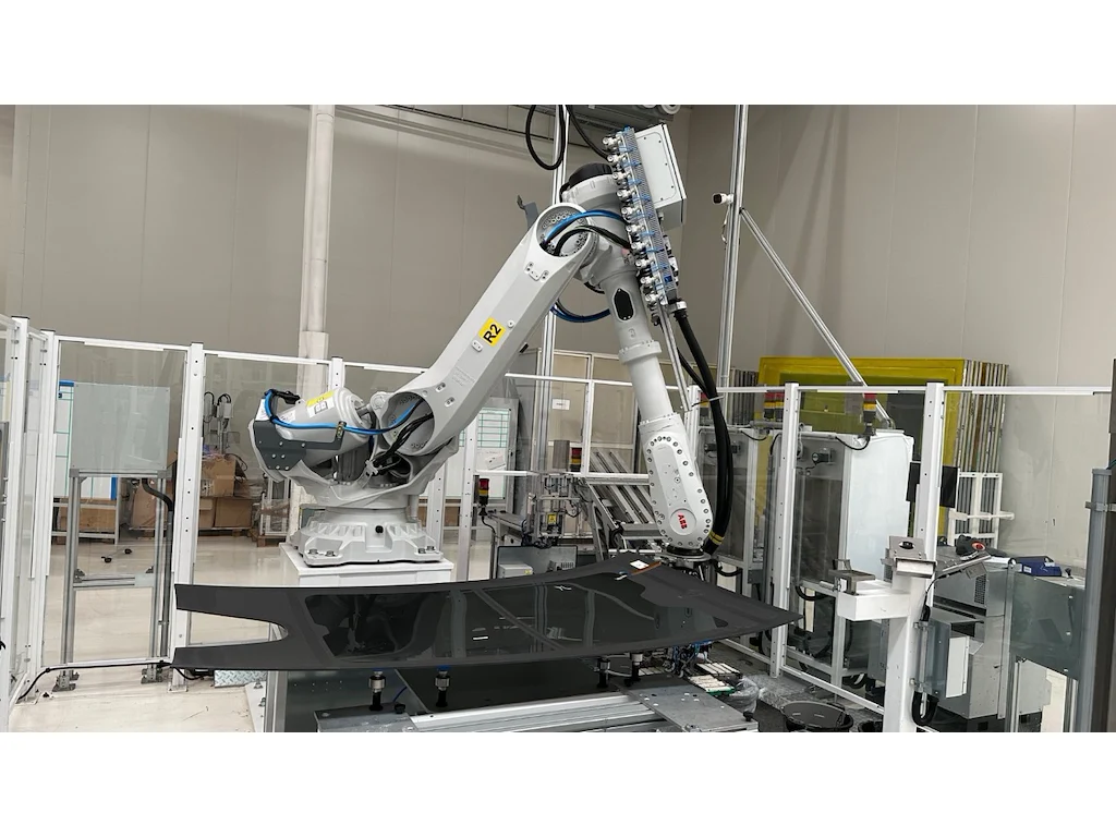 This lot contains the following items:<br /> RACK ROTATING PLATFORM 1500X3500<br /> GLASS VERTICAL CENTERING<br /> ABB ROBOT IRB 7600-150/3.5 WITH EXCHANGEABLE TOOLING<br /> ROBOT TOOL CHANGE STATION<br /> TRANSPORT BELT CONVEYOR 2600<br /> TRANSPORT BELT CONVEYOR 2600<br /> ABB ROBOT IRB 6700-150/3.20 WITH PRIMER HEAD<br /> TIP FEEDER STATION<br /> CHEMICAL STATIONS 2PCS<br /> GLASS SHUTTLE 3 STATIONS 7500<br /> CHEMICAL STATIONS 2PCS<br /> GLASS FLIP OVER+INSPECTION STATION<br /> TRANSPORT BELT CONVEYOR 2500<br /> GLASS STACKER 6 POSITIONS WITH GLASS LIFTER<br /> ABB ROBOT IRB 2600-12/1.85<br /> PARTS FEEDER STATIONS 2PCS<br /> TRANSPORT BELT CONVEYOR 3000 + CENTERING<br /> TILTABLE GLASS PREHEATING<br /> ABB ROBOT IRB 7600-325/3.1<br /> ABB ROBOT IRB 6650S-90/3.9<br /> ROTATING BELT CONVEYOR 2200<br /> INSPECTION BELT CONVEYOR WITH POP UP TABLE 2500<br /> GLASS STACKER 10 POSITIONS<br /> TRANSPORT BELT CONVEYOR<br /> HENNECKE CHEMICAL STATION<br /> HENNECKE PUMP STATION<br /> INDUSTRIAL FRIGO GRA2 20/X<br /> BBG ENCAPSULATION - BFT-P V8 22X14 + CABIN<br /> TRANSPORT BELT CONVEYOR 4500<br /> TRANSPORT BELT CONVEYOR WITH POP UP TABLE 3500<br /> ABB ROBOT IRB 6700<br /> SCHLEICHER LSB-F-856/1 ROBOT MILLING CABIN + 2X ROTATING JIG + EXTRACTION<br /> TRANSPORT BELT CONVEYOR 3000<br /> ABB ROBOT IRB 6700-155/2.85<br /> INSPECTION CABIN + GLASS FLIP OVER<br /> TRANSPORT BELT CONVEYOR WITH POP UP TABLE 2800<br /> GLASS STACKER 10 POSITIONS<br /> ABB ROBOT IRB 6700-150/3.20<br /> CAMERA CABIN<br /> TRANSPORT BELT CONVEYOR 2500<br /> TRANSPORT BELT CONVEYOR 2500<br /> GLASS SHUTTLE 5 STATIONS 14000<br /> GLASS TILTER<br /> ABB ROBOT IRB 6700-150/3.20<br /> ABB ROBOT IRB 6700-150/3.20<br /> CHEMICAL STATIONS 2PCS<br /> ABB ROBOT IRB 6700-150/3.20<br /> GLASS FLIP OVER<br /> PART FEEDER 2 STATIONS<br /> ABB ROBOT IRB 4600-40/2.55<br /> GLASS TILTER<br /> ABB ROBOT IRB 6700-150/3.20<br /> ABB ROBOT IRB 6700-150/3.20<br /> CHECKING FIXTURE - TECHNOSENSE<br /> RACK ROTATING PLATFORM FOR 4 RACKS 2200X1400 & 4 POSITIONS<br /> GLASS INSPECTION STATION + SHUTTLE<br /> <a href="https://drive.google.com/drive/folders/1xU8xQNc1_XToU8SGlvSeiEH7hGaTgByX" target="_blank"><b>Click here to view all photos</b></a>