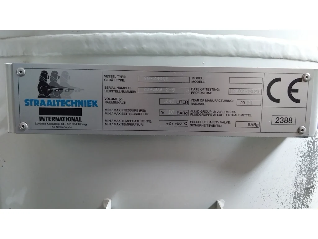 Type: 98-240ce, yoc: 2021, v: 240l, pressure: 0-10bar