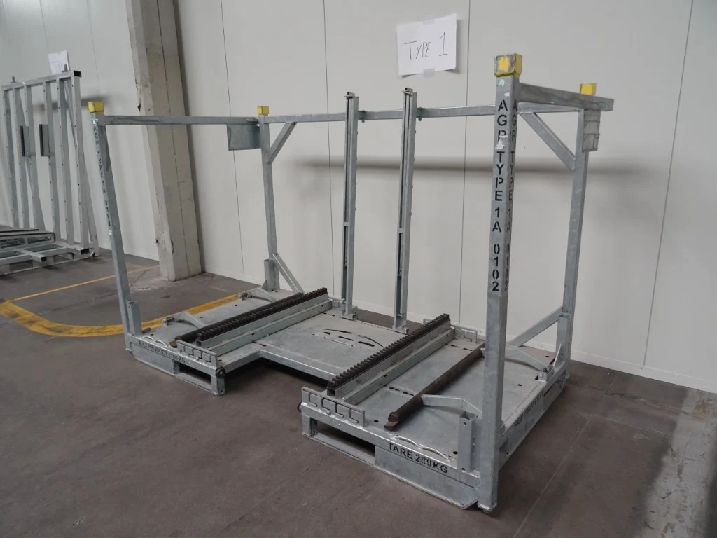 Max product: 1100kg, tare: 280kg, 2400x1200x1500<br /> locatie: magazijn buiten