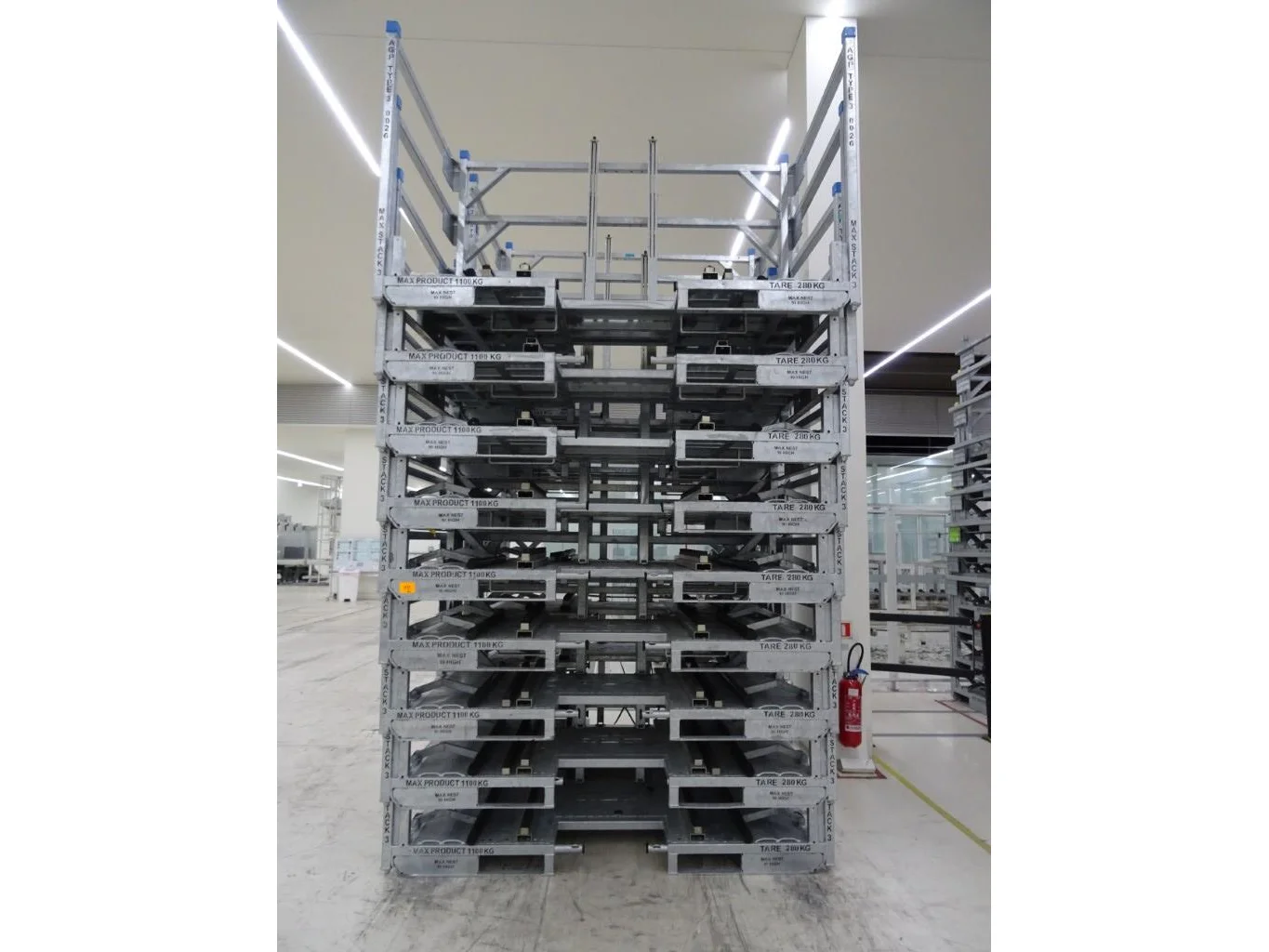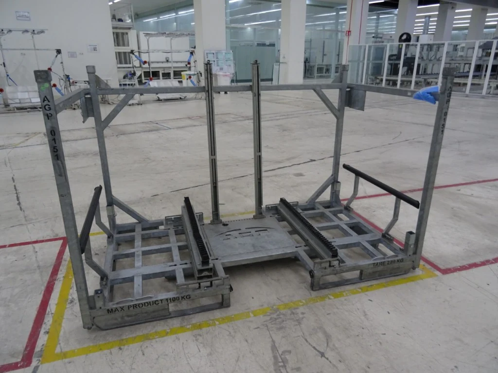 Max product: 1100kg, tare: 280kg, 2400x1200x1500<br /> locatie: magazijn oven