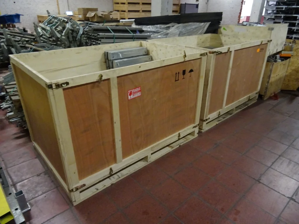 Verdeeld over 4x houten kist samen met 3x pallet<br /> locatie: magazijn buiten